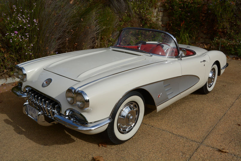 Quick to respond to public opinion, the 1959 Corvette was less flashy and more comfortable. A T-handle lockout was added to the gear lever of the four-speed ’box to prevent accidental engagement of reverse. Other improvements included concave instrument lenses to prevent reflections and the addition of a parcel tray under the passenger grab handle. Most significantly, trailing radius rods were incorporated into the rear suspension to help prevent axle wind-up caused by the more powerful engines. Upgraded brakes and power windows were among the options. “New sleekness, elegance and roadability for America’s only sports car” was Chevrolet’s new claim.