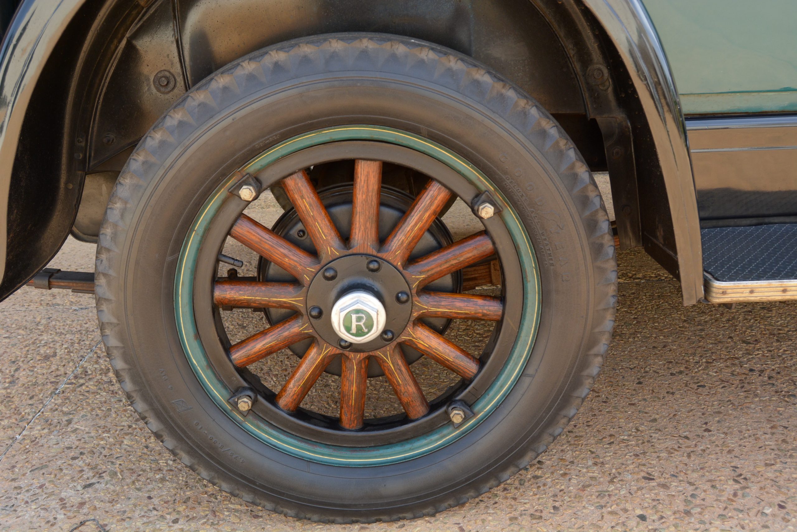 The car is unrestored – a so-called ‘oily rag’ example, a term denoting a vehicle that has not been renovated. Its looks are typical of the period, the green paintwork and wooden artillery wheels highlighted with gold pin-striping that is fading only in places, adding much revered patina to the car. Opening the interior door latch and stepping up onto the seat straightaway reveals a driving position that is a bit cramped and distinctly ‘knees up’. Push and turn the key, depress the floor starter button and the motor fires up with a quick and steady idle. Depress the clutch, wiggle the wand-like gear lever to the left and back into first, release the adjoining handbrake and the Rugby kicks off with typical immediacy before quickly running out of revs. The central accelerator has short travel but once into second the car pulls with ease – it is pretty much a ‘do anything’ gear. Once up to speed, top gear comes into play and the car cruises at a comfortable gait.