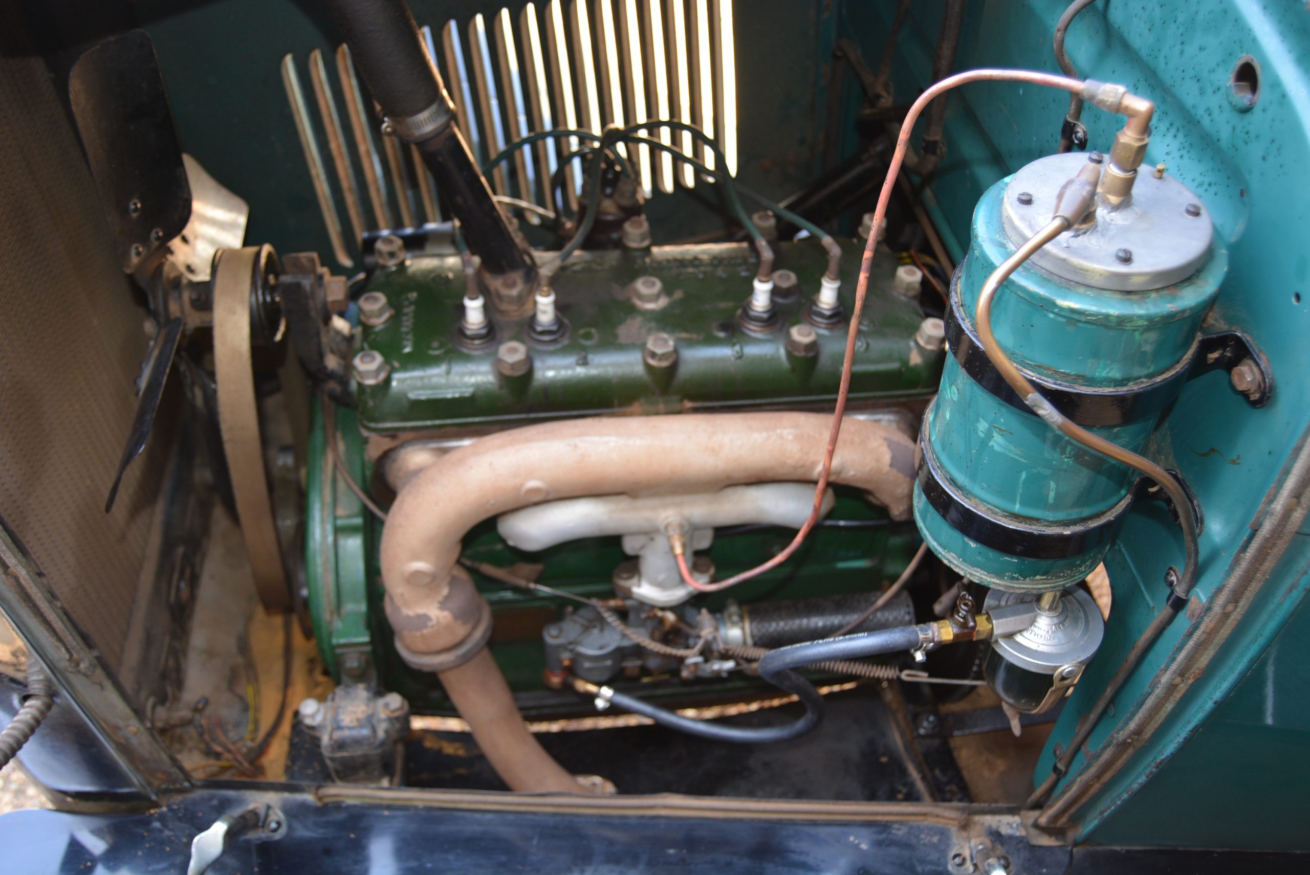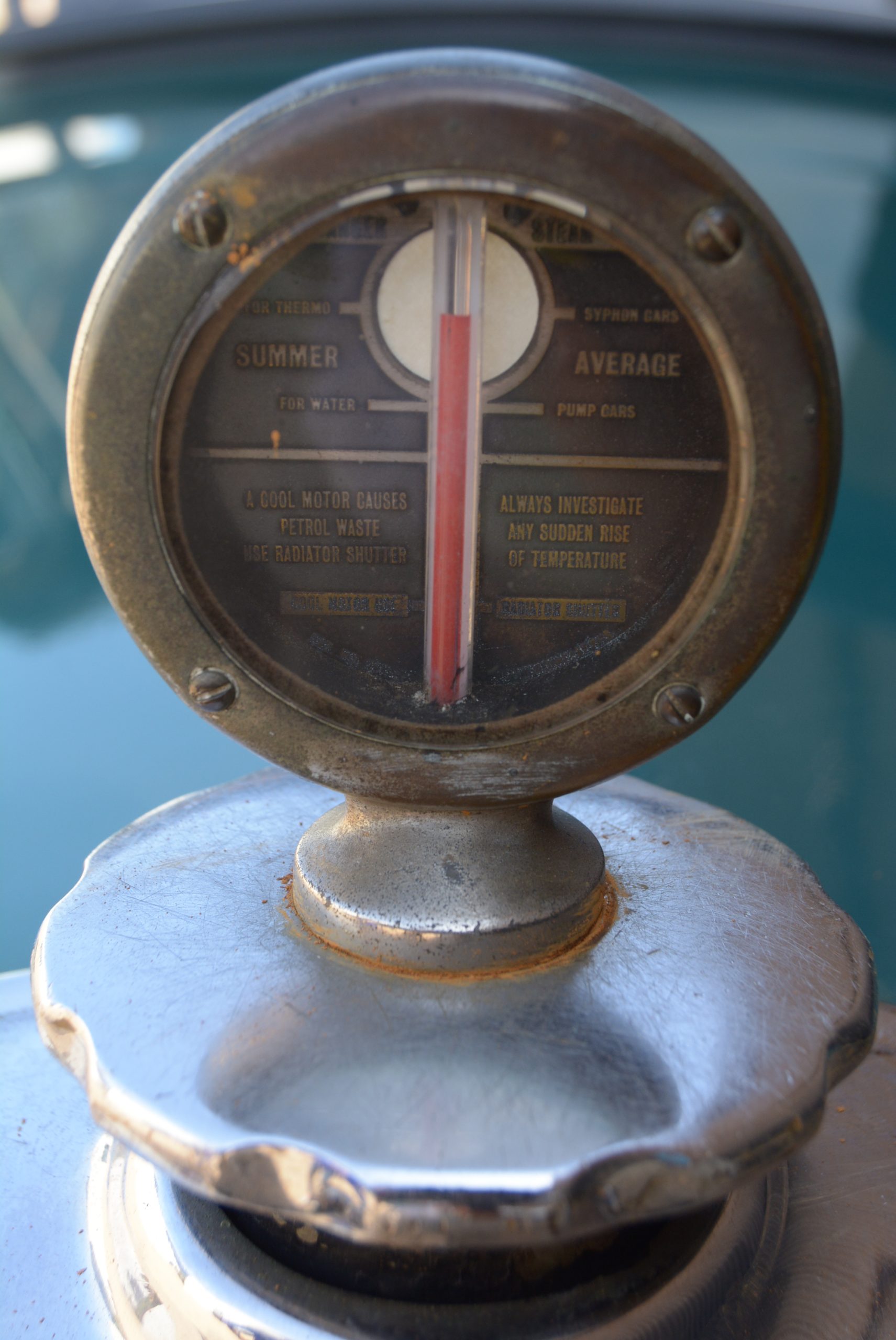 Considering the rudimentary chassis and simple springing, the car provides a very pleasant ride on its 4.75/5.00×18 balloon tyres. Directional stability is excellent, and sitting close to the 16-inch four-spoke steering wheel helps with arm-twirling in tight confines. But to be fair, the effort required to operate the worm-and-gear mechanism is not unduly heavy. The thermometer atop the radiator is a little loose on its mounting and gently rotates due to wind and vibration, a forgivable quirk given the car’s near-90 year lifetime, an age it carries very well.