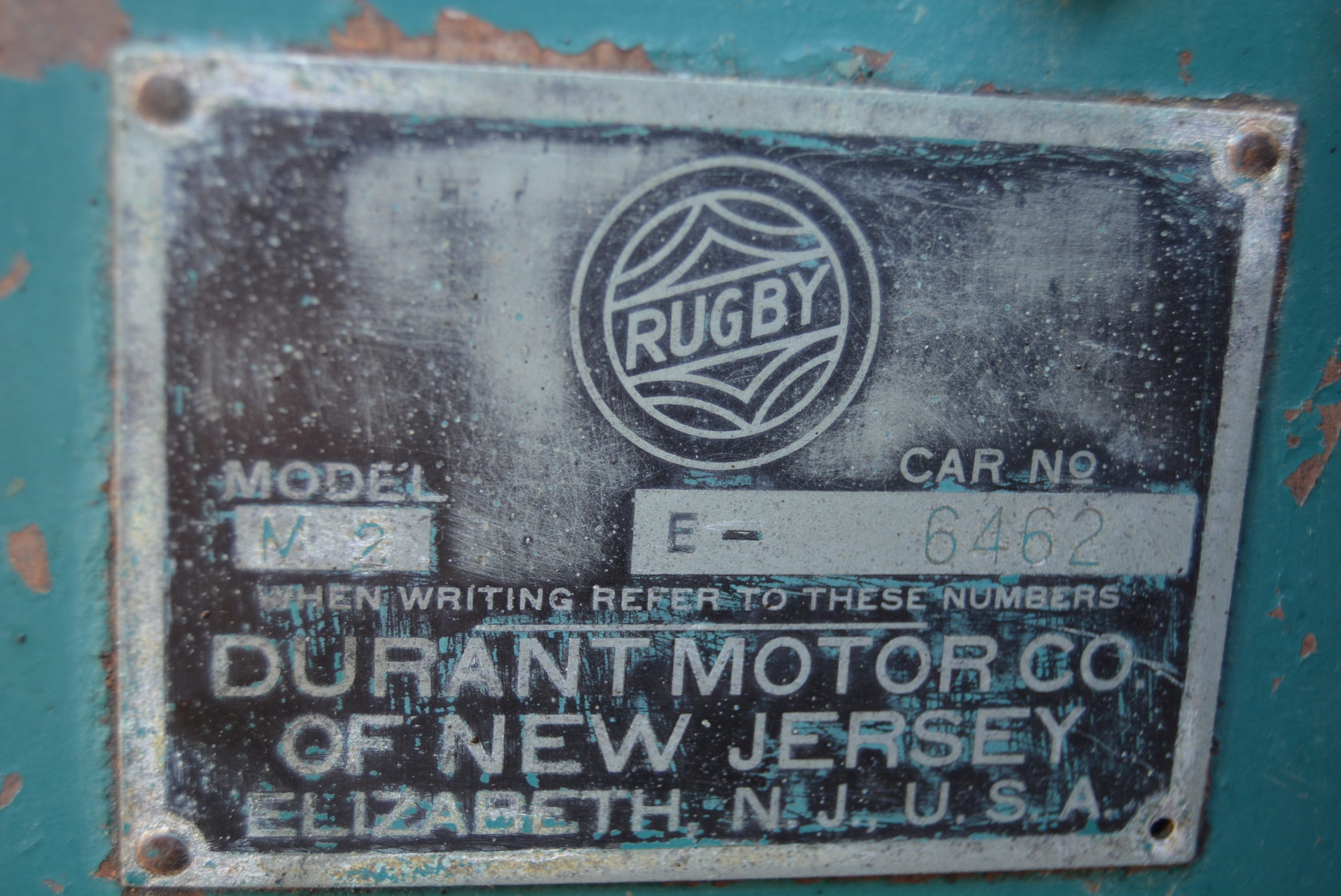 Rugbys were sold in South Africa, and in Bob Johnston’s book Early Motoring In South Africa, at the beginning of the chapter covering the 1920s he states “By far the most popular make was the Chevrolet, with six cylinders. Next came Ford in four-cylinder Model A form, followed by Dodge, Chrysler, Buick, Hupmobile, Rugby-Durant, Essex and Studebaker before the first of the non-American cars, Austin”. The book carries two period photographs; one captioned “A cruelly-twisted Rugby driven around Johannesburg on three wheels. The object of the demonstration is not clear”, and the other shows “Two new Rugbys crossing the Umlazi River en route to a customer in Zululand”.