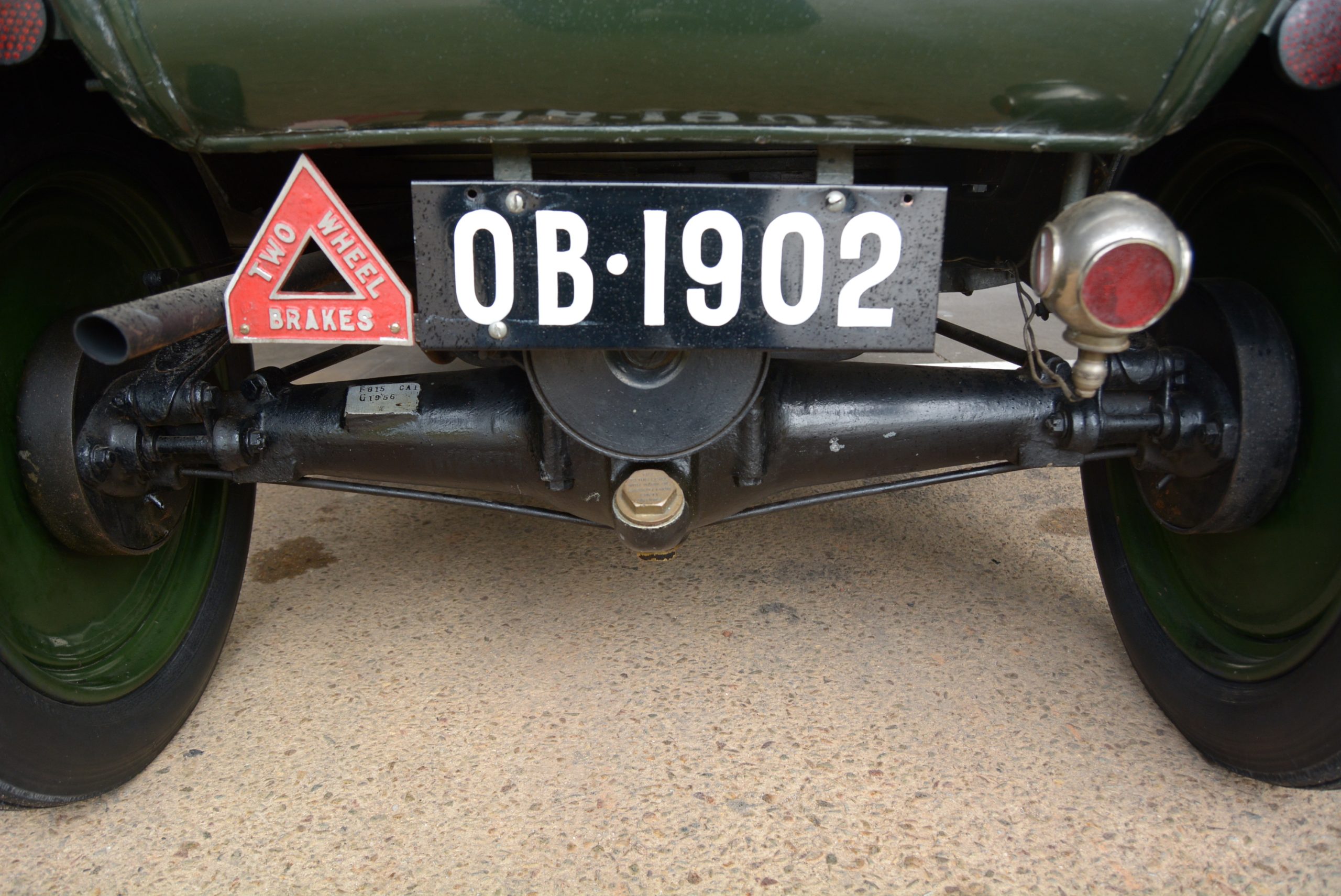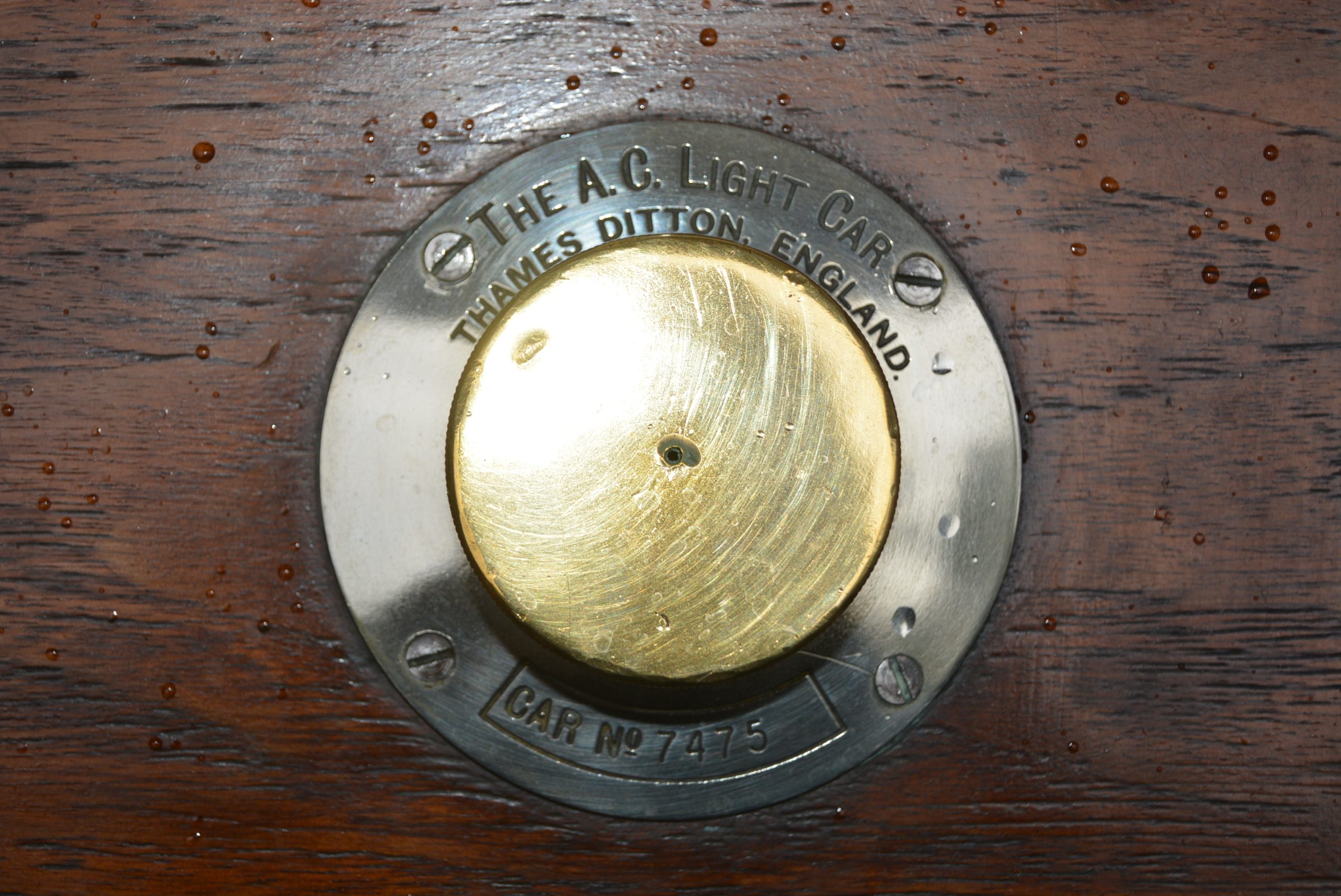 Waldie went to some lengths to establish the car’s exact year of manufacture, which was not as straightforward as one might expect. Chassis numbers and rear axle codes appear to have been the determining factors and correspondence between Waldie and the AC Owners’ Club in Britain established the car, chassis number 7475, as having being first registered on 19 August 1922. Apart from having only a single door, the axle code and having six wheel nuts identifies this car as an Empire model, rather than the slightly more upmarket Royal, and in 1966 only 10 Empire models were known to exist.
