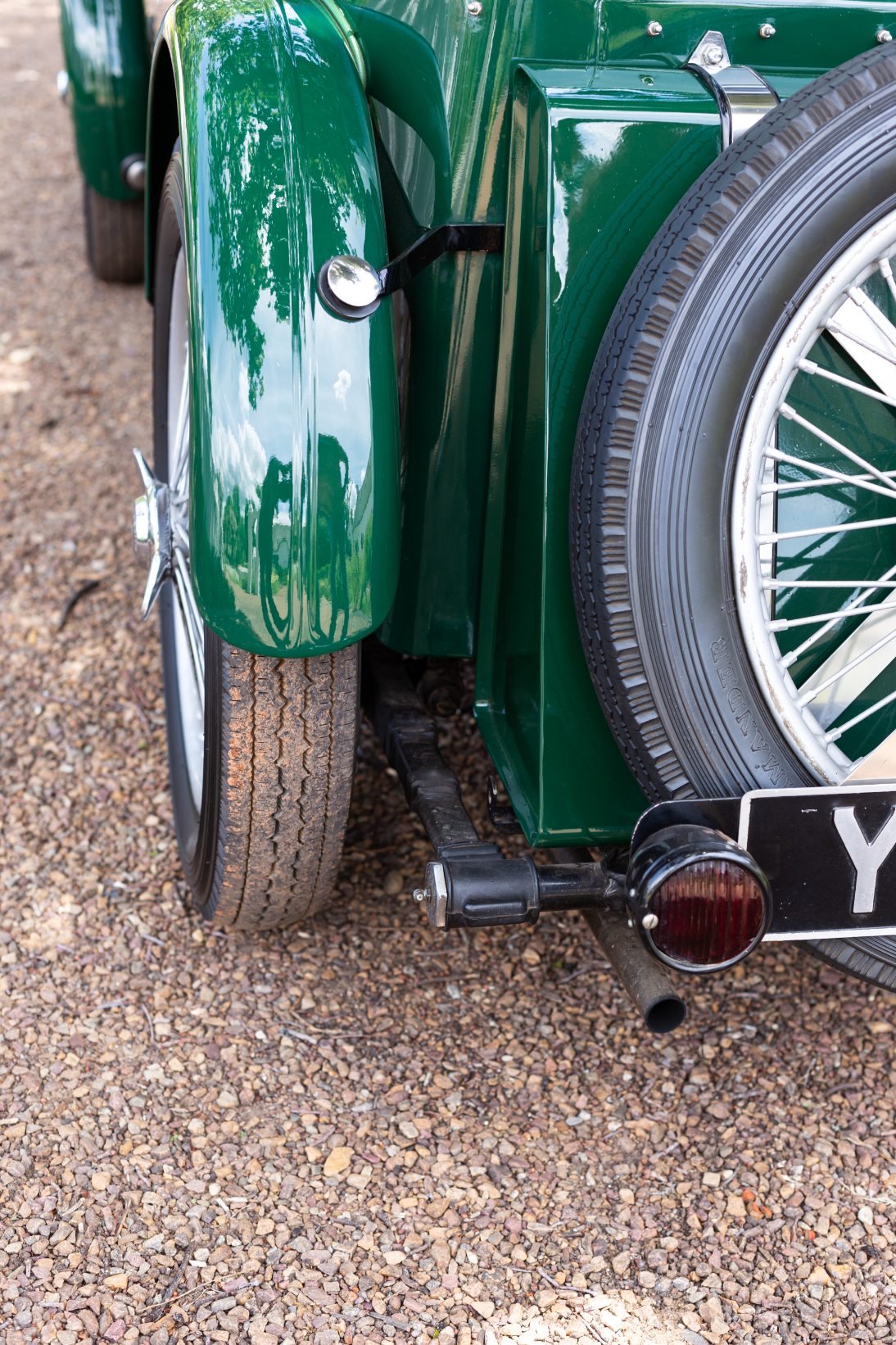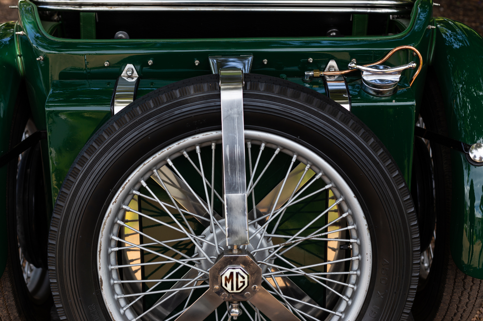 The J2 was strictly a two-seater and set the fashion in MG sports cars for many years to come. With its classic ‘two humped’ scuttle and low, cutaway doors, the car was a masterpiece of simple, functional race-bred design that MG utilised for decades to come, and is today considered by many to be one of the classic sports cars of all time. The long bonnet conceals not only the engine, but the gearbox, foot controls and driver’s/passenger’s legs! The tail of the car was short and stubby only extended by the 12-gallon (54,5 litres) slab tank, and the strapped-on spare wheel. Initially, the car was produced with cycle-type front and rear wings, which were replaced a year later with long, swept wings.