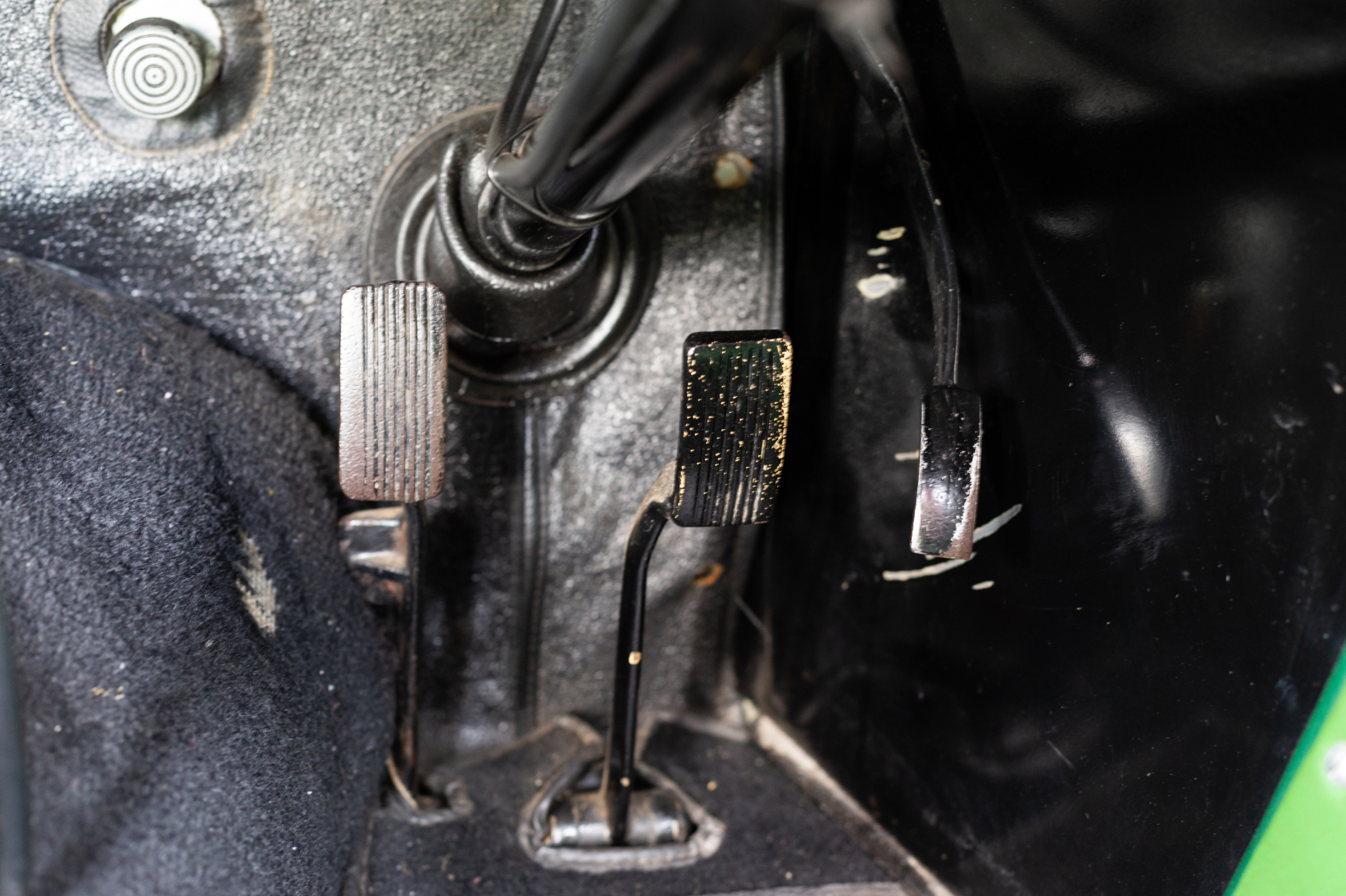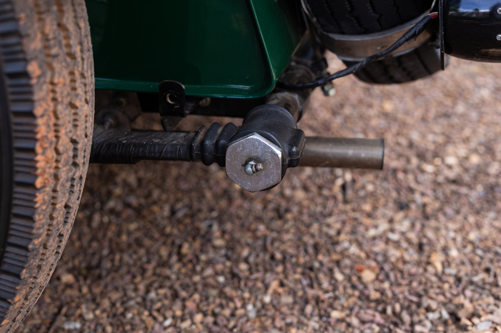 The four-speed non-synchro gearbox has a neat remote gear change enclosed in an alloy casting, bringing the gear lever very conveniently to the driver’s hand – but driver beware! The shift pattern has 1-2 on the right-hand-side of the H gate, and 3-4 on the left… The top two ratios are close, giving a good high speed range, whilst first and second gears are suitably low for trials work and suchlike. There is a fair step between second and third ratios. A single plate dry clutch transfers the power via a Hardy Spicer propshaft to the three-quarter floating rear axle.