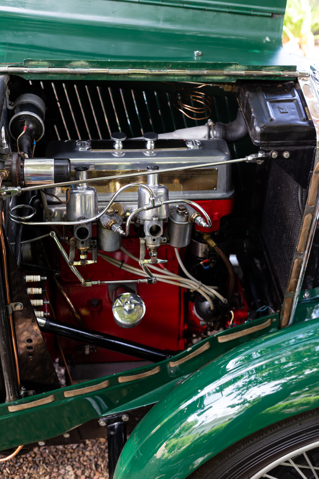 Power came from the well-tried 847cc engine as used on the successful M-Type, which was derived from a Wolseley unit. With an eight-port crossflow cylinder head and twin SU carburettors, this unit produced a healthy 36 hp (26,8 kW) at 5 500 r/min though with only a two main bearing crankshaft, revving the engine to its maximum soon produced premature failure of the flimsy crankshaft. A vertically-mounted dynamo was driven off the front end of the crankshaft, with its armature forming part of the ohc drive. This particular design was a weak point on these engines with seals leaking oil into the dynamo, causing embarrassing flat batteries.