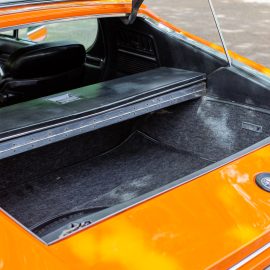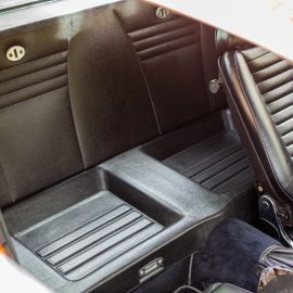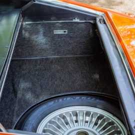 The Montreal appeared at the Salon de Geneva in March 1970 and went on sale the following year. FMM’s brilliant orange-coloured example was made in 1972 and was part of the Roderick Ketterer Alfa collection purchased by FMM in 2008. Although deemed a 2+2, the back seats are in reality a token gesture and are useful only for holding luggage. A lever in the B-pillar releases the large, square rear window that is supported on struts and gives access to the boot space.