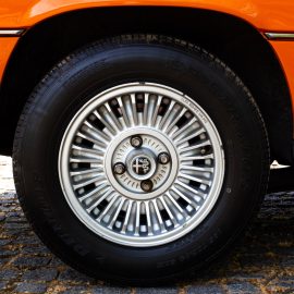 The running gear comprised coil-spring/wishbone front suspension with an anti-roll bar, a live rear axle located by radius arms and an anti-roll bar, telescopic dampers, rack-and-pinion steering, servo-assisted four-wheel ventilated disc brakes and 6½Jx14-inch Campagnolo cast alloy road wheels. The handbrake works on separate drums.
