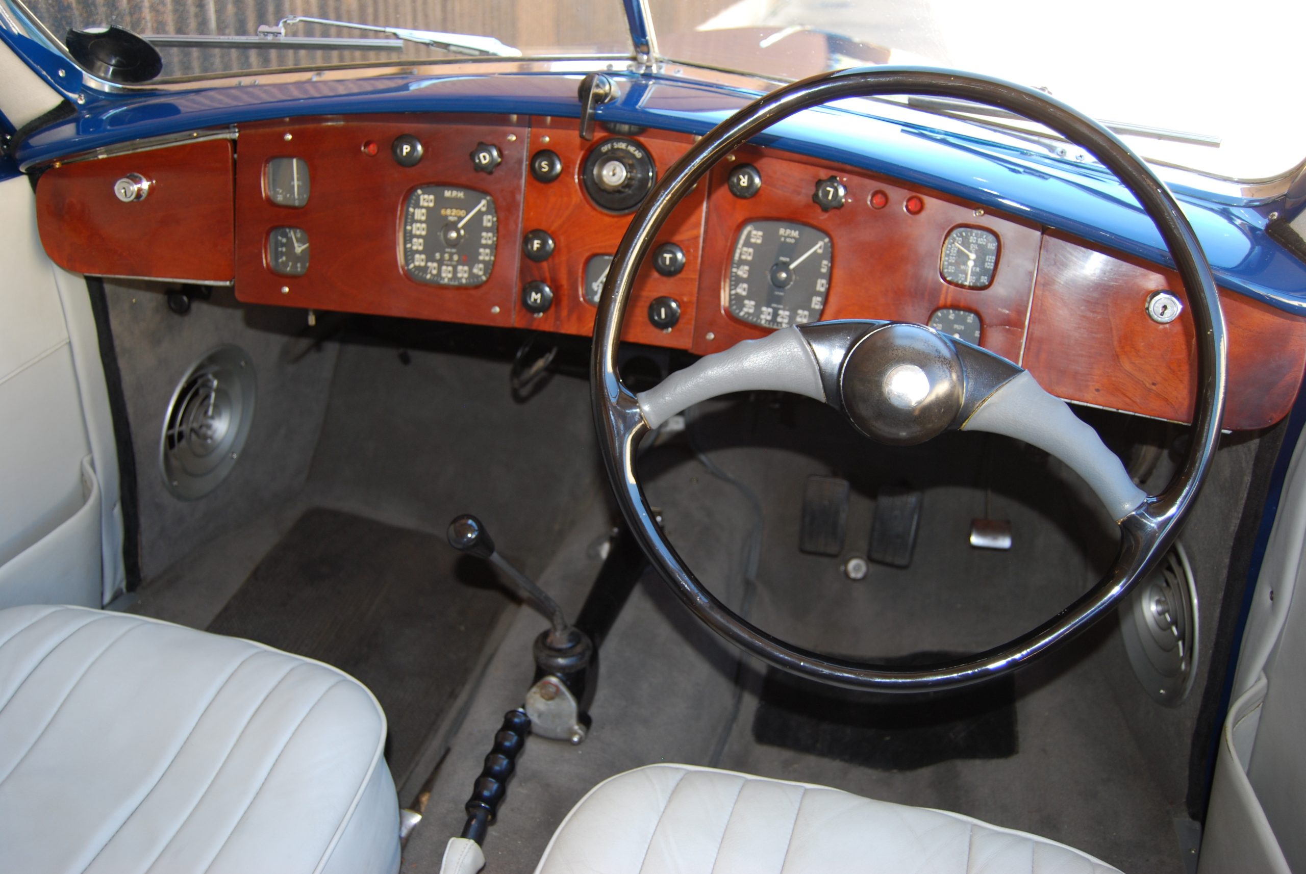 Twist the key, press the starter and that classic straight-six crackles into life and somehow immediately awakens the senses. Engage first, pull away and the sensation heightens. None of the controls are heavy to operate, and looking at the road ahead through the fairly shallow split windscreen and down that distinctive bonnet heightens expectations. I can imagine owners blasting through the twisting English countryside to an early-morning cross-channel ferry and emerging in Europe for a flat-out inter-continental run along unrestricted motorways to a luxury leisure destination, arriving relaxed and unruffled, the car taking it all in its stride.