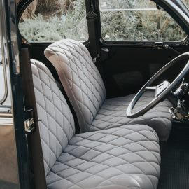 The Dolly was an upspec Special, and it is one of these that is part of the FMM collection. Made in 1986, the museum’s car is in superb condition. The additional features amount to two-tone paint, a speedo, an interior light, different door handles and better cloth upholstery. Despite its simple construction, in its own quirky way the 2CV6 is certainly a distinctive and attractive shape.
