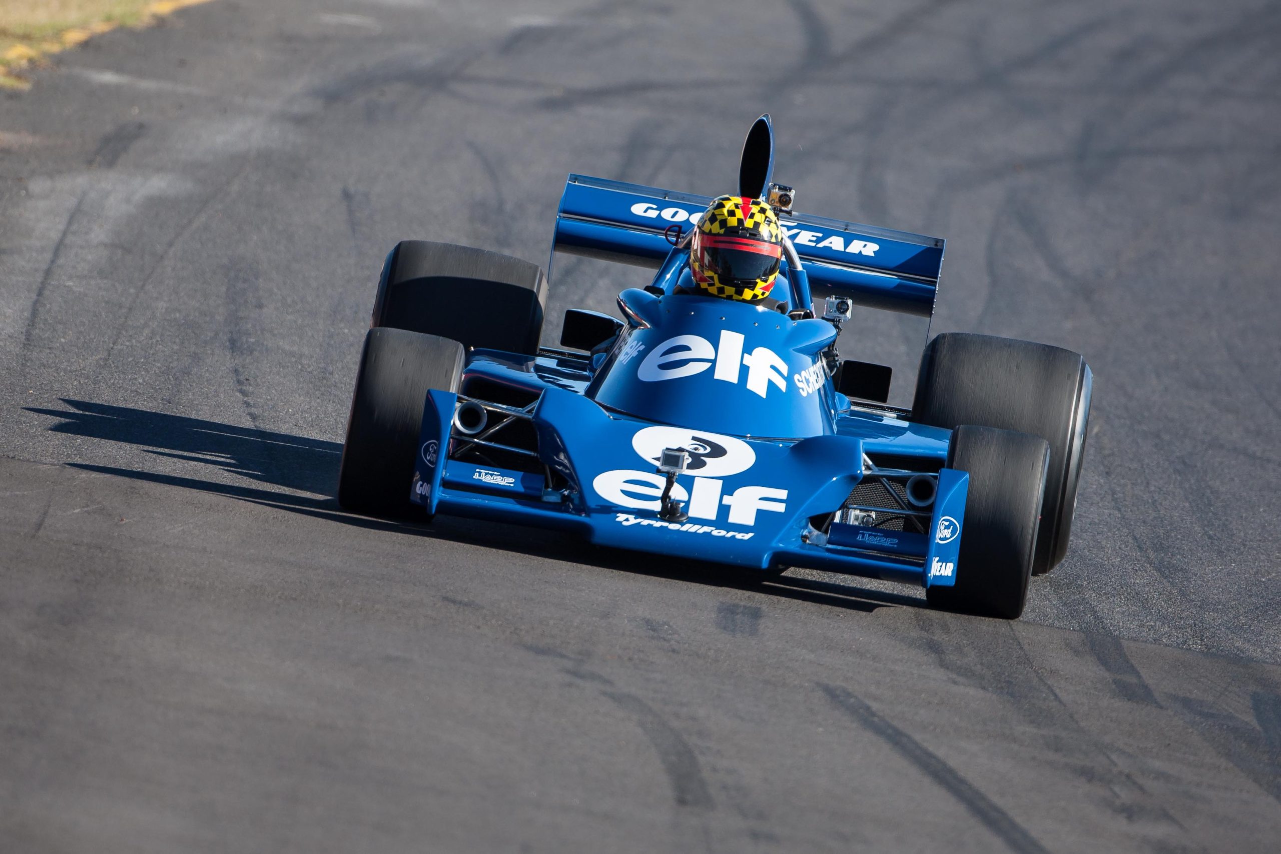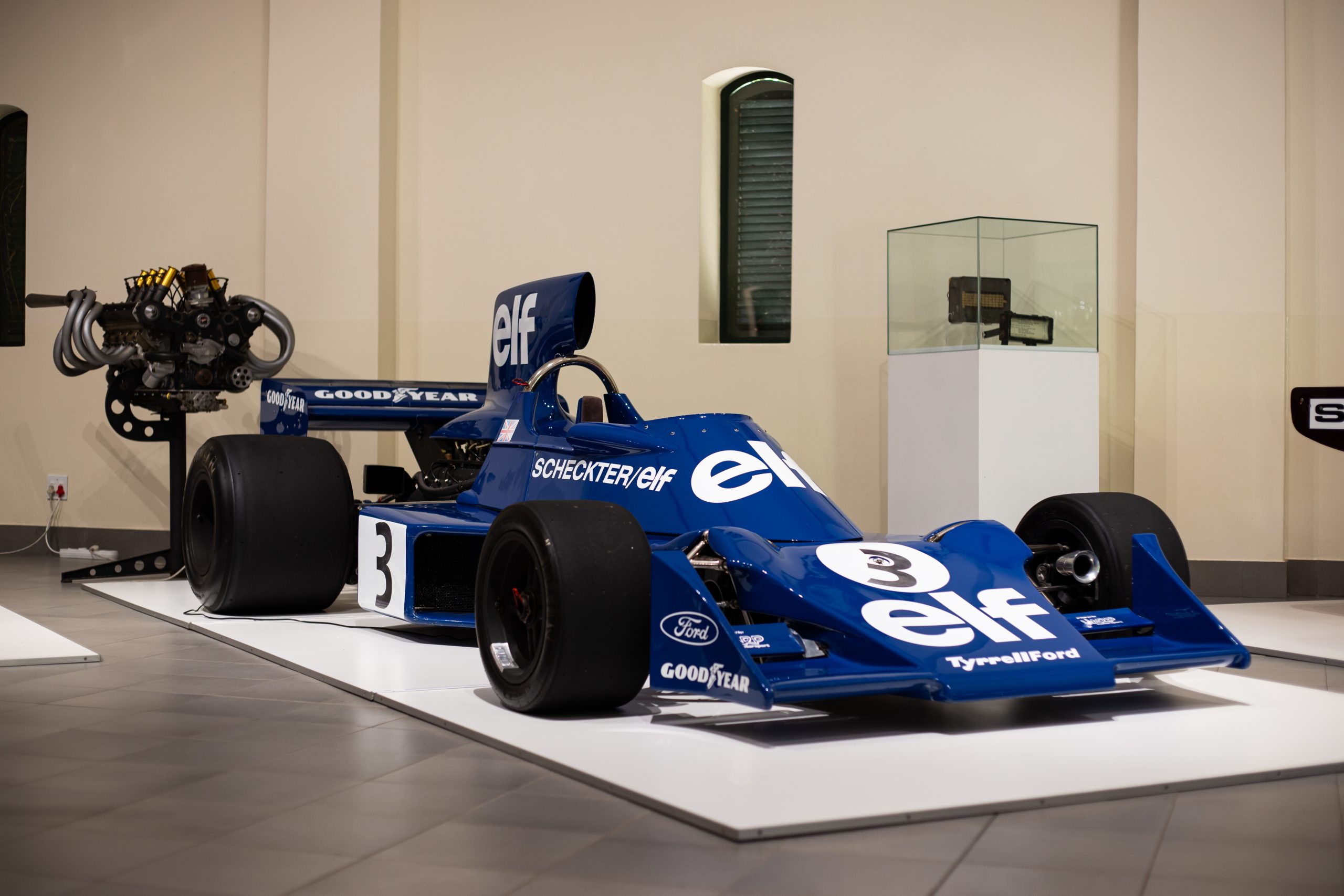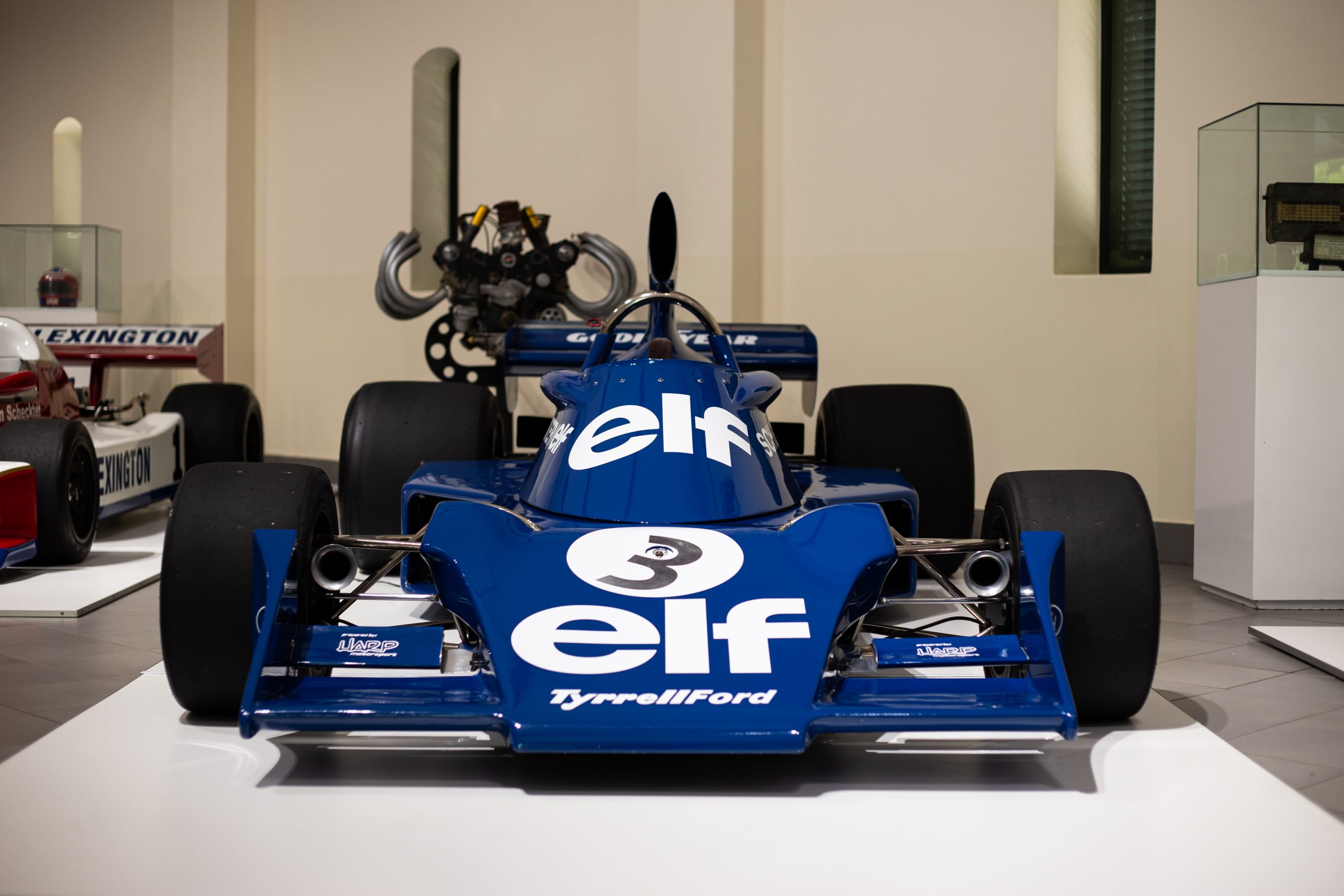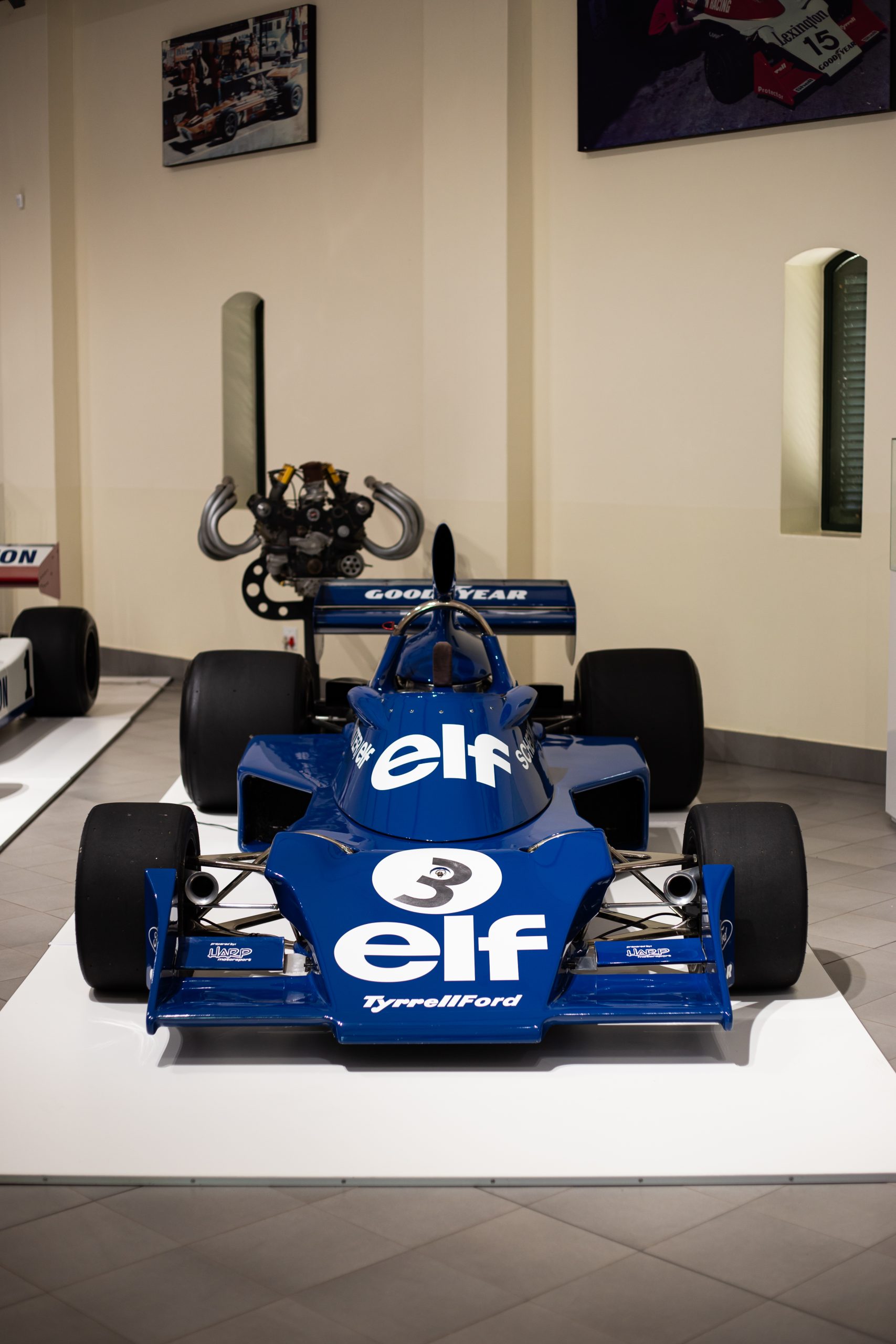 Resplendent in its distinctive blue Elf Team Tyrrell livery carrying Jody’s 1974 season race number 3, 007/1 is on display in Hall D.