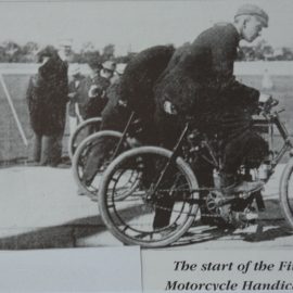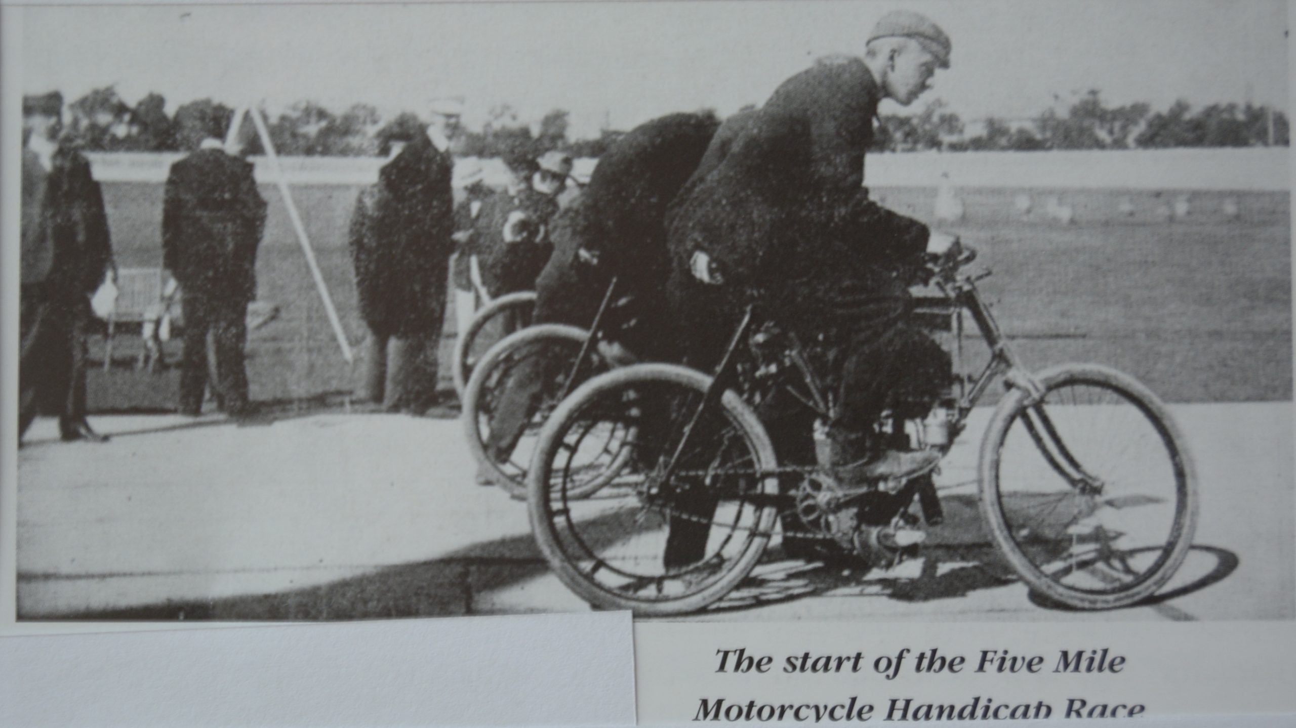 At 16h20 there was a 5-mile Motor-paced Cycle Race that proved to be something of a fiasco “due to the lack of understanding between the cyclists and pacers on motorcycles”. Nevertheless, during one of the races, ‘Yankee’ Jenkins set up a South African one-mile motorcycle race record on his Holley.