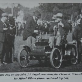 That first race took place on 1 October 1900 at the Newlands cricket ground, which, incidentally, was only five years after the world’s very first motor race that took place in France. His Excellency the Governor of the Cape, Sir Alfred Milner, was present at Newlands and took a keen interest in the race. The Cape Times, in reference to the race, reported that “There were only two competitors, and Mr J P Engel, with his handsome motor easily won the first prize. Naturally, great interest was taken in this novel (so far as this country is concerned) race, and at its conclusion His Excellency the Governor inspected the motor. The Governor expressing a desire to have a ride on the machine, and Mr Engel took him twice round the course at full speed, amid the loud cheers of the spectators, the band playing the National Anthem. Colonel Stowe (the American Consul) then had a couple of turns around the course on the motor, the band appropriately striking up the favourite American air of ‘Yankee Doodle’.
