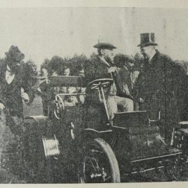 “W M Jenkins was the other competitor. The race was set down for five miles, but the motors started from opposite ends of the field, and there was a condition that on one of the motors overtaking and passing the other, the motor thus taking the lead would be declared the winner. As a matter of fact, it was apparent soon after the start that Mr Engel’s motor was the more powerful of the two, and just after the first mile had been covered it passed the other motor, and thus won the race.”