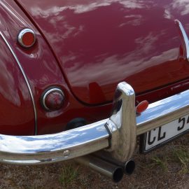The 100 remained in production until 1956 when the 100-6 emerged with a 2-inch (50,8 mm) longer wheelbase – overall length increased as a result – and a more powerful straight-six engine in place of its predecessor’s inline-four, and added two occasional seats, which later became optional. Legendary Motor Sport editor Bill Boddy described occasional seats as being “seats for very occasional kids” – it was certainly not a definitive 2+2! The body’s lines were slightly streamlined, a smaller, wider radiator grille was adopted, the bonnet now boasted an air scoop, and the windscreen was now fixed.
