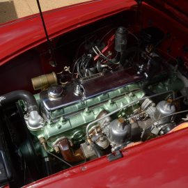 Designated by the factory as a BN4 model, it was powered by a tuned version of the cast-iron BMC C-Series 2 639 cc, inline-6, overhead-valve engine previously fitted to the Austin Westminster. Fitted with twin SU carburettors, it delivered 102 bhp (76 kW) at 4 600 r/min. In 1957, revisions to the manifold and cylinder head increased output to 117 bhp (87 kW) at 5 000 r/min. In this guise, dubbed BN6, the UK’s The Motor magazine road test recorded a top speed of 103,9 mph (167,2 km/h) and a 0-60 mph (97 km/h) sprint time of 10,7 seconds. Fuel consumption was given to be 13,6 l/100 km. This model was designated BN6, and amongst a few other changes, the previously standard overdrive unit was made optional, and the +2 seats were discontinued to increase covered luggage space. Also that year, production was moved from the Austin plant in Longbridge to the MG plant in Abingdon.