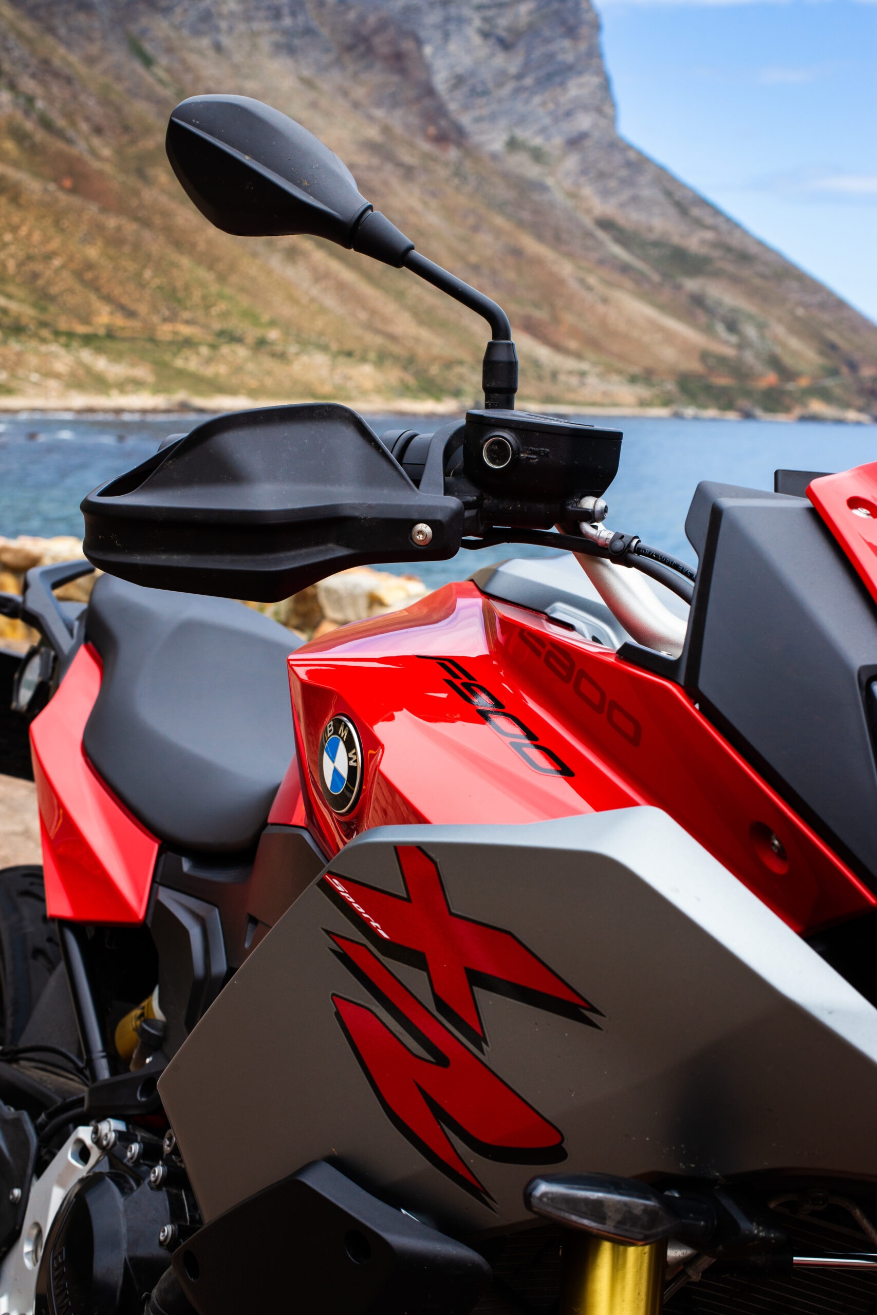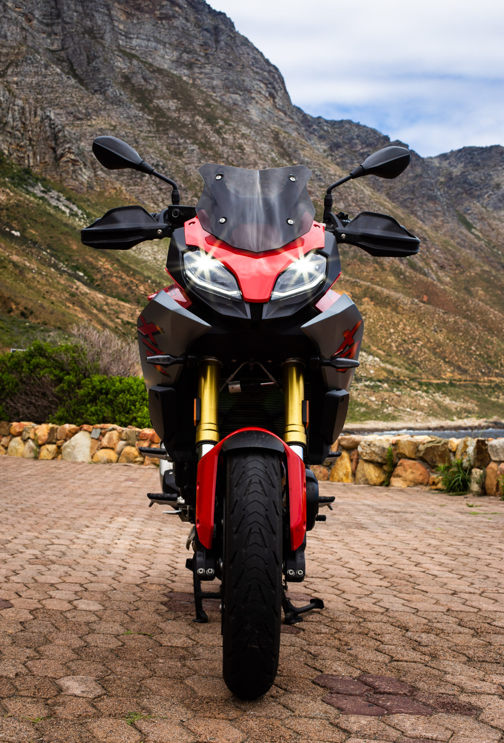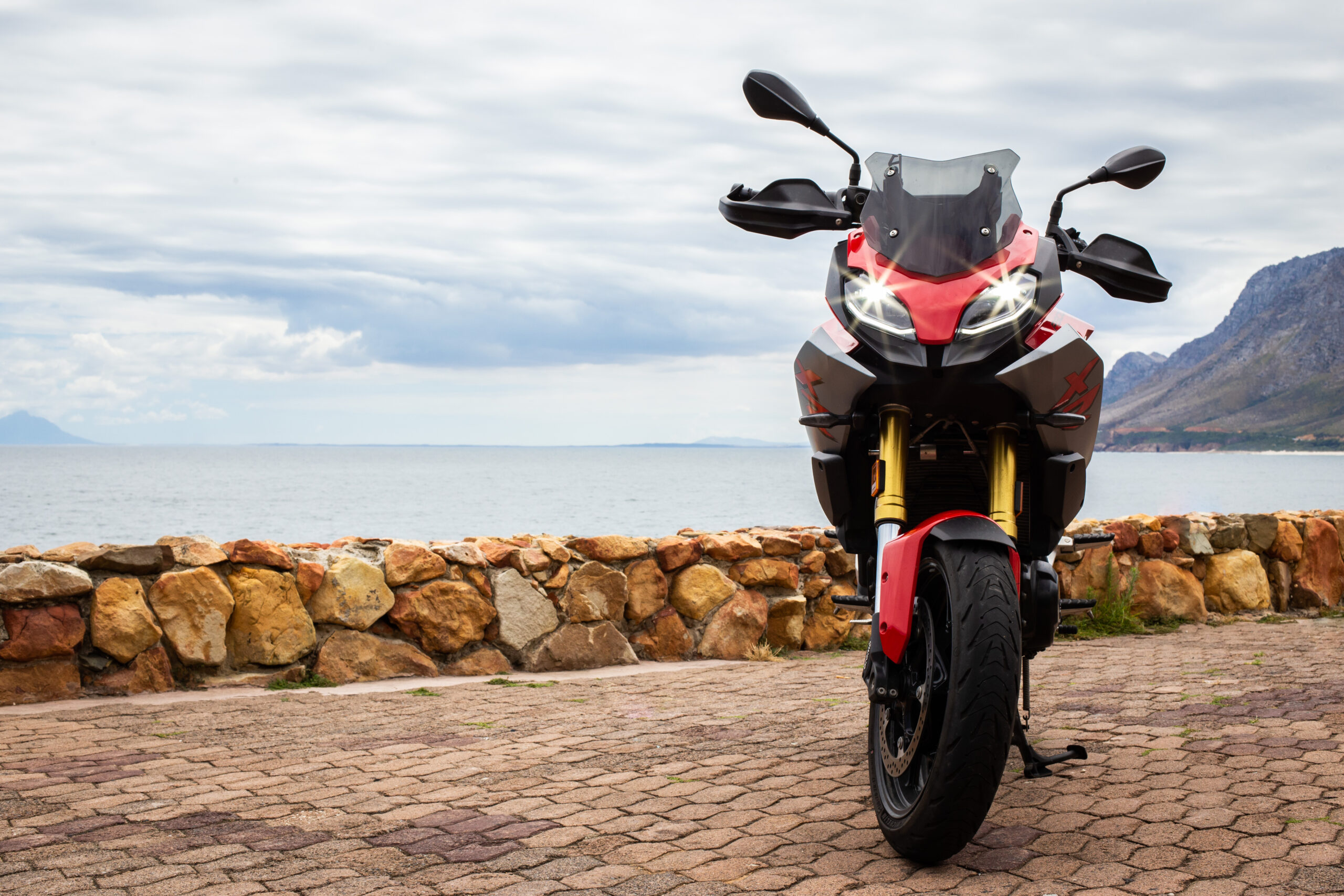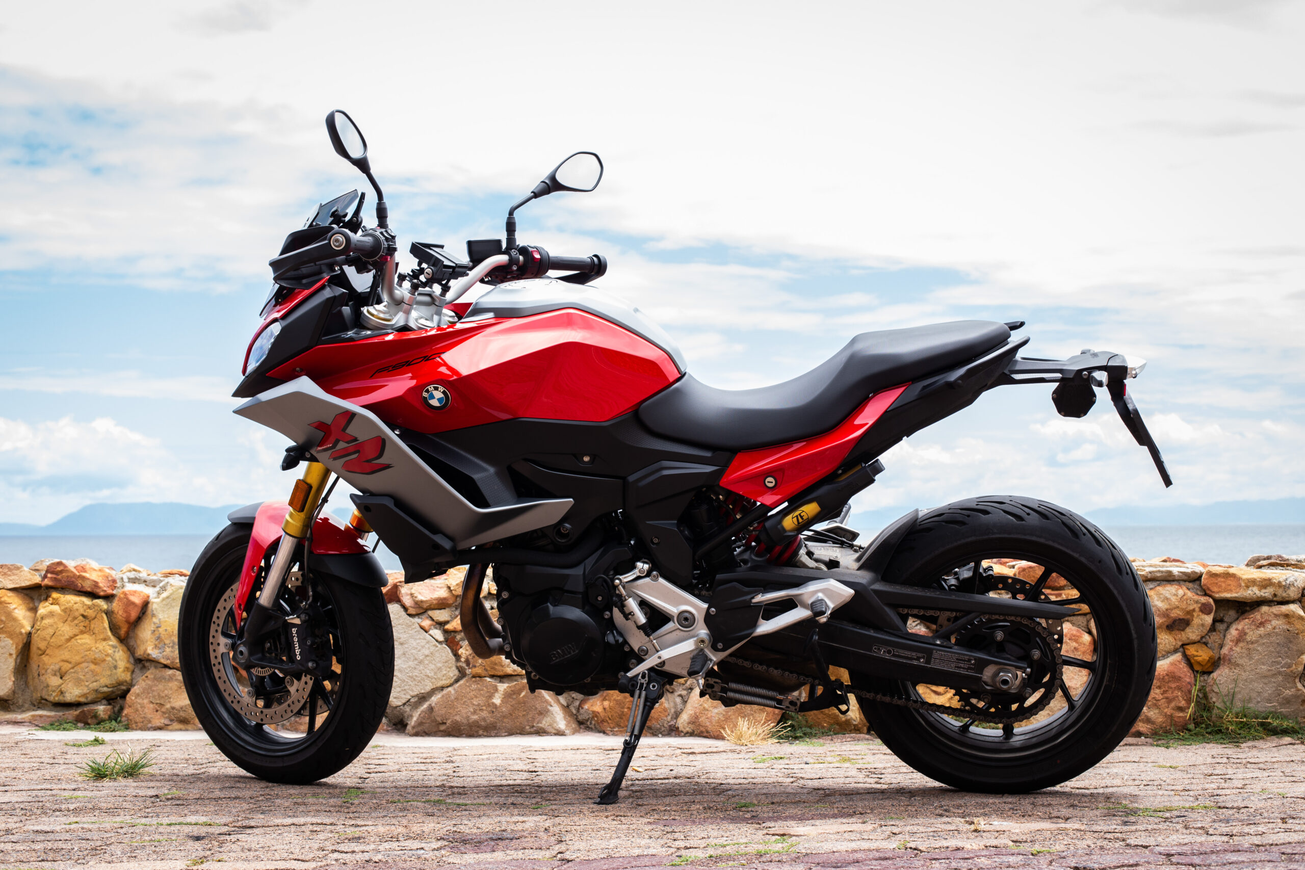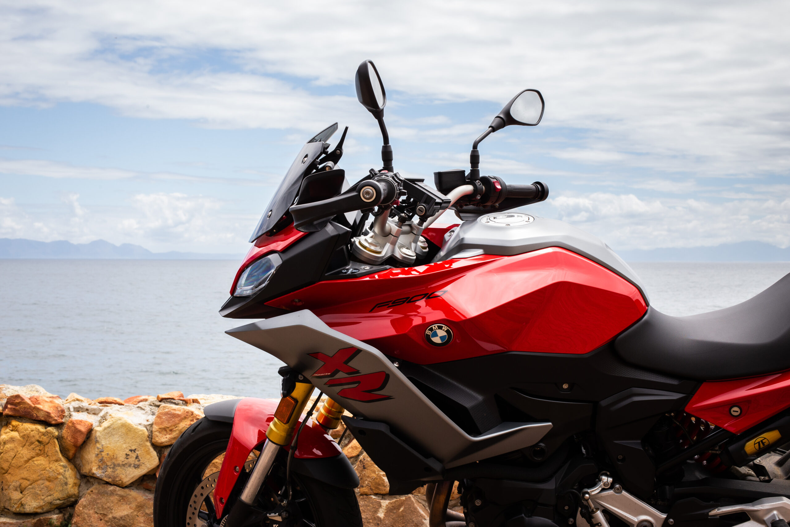 The F900 XR is a sport-tourer and fits into both roles rather well in my opinion and follows rather closely in the tracks of its bigger brother, the S1000 XR. The F900 XR is obviously down on power with its 895cc motor making 77 kW when compared to the S1000’s 999cc that makes 121 kW. Power to the rear wheel is a standard chain and sprocket drive. The two bikes almost weigh the same with F900 XR coming in some 4 kg lighter at 219 kg. But there is more than enough power and torque to comfortably cruise out to Rooi Els along one of the best roads in the Western Cape. Even two up, the F900 XR pulls well in each gear and the 92 N.m of torque available at around 6 500 r/min preclude constantly flipping through gears. The six-speed gearbox is nice and precise. I especially like the new EBC engine braking control. EBC smoothes out the engine braking effect, so even a heavy downshift is taken care of and you never feel like the back wheel will lock up. The F900 XR also has DBC Dynamic Brake Control, which goes hand-in-hand in with EBC, ABS and the MotoRad Brembo brakes. Combined, these systems give this motorcycle phenomenal stopping power.