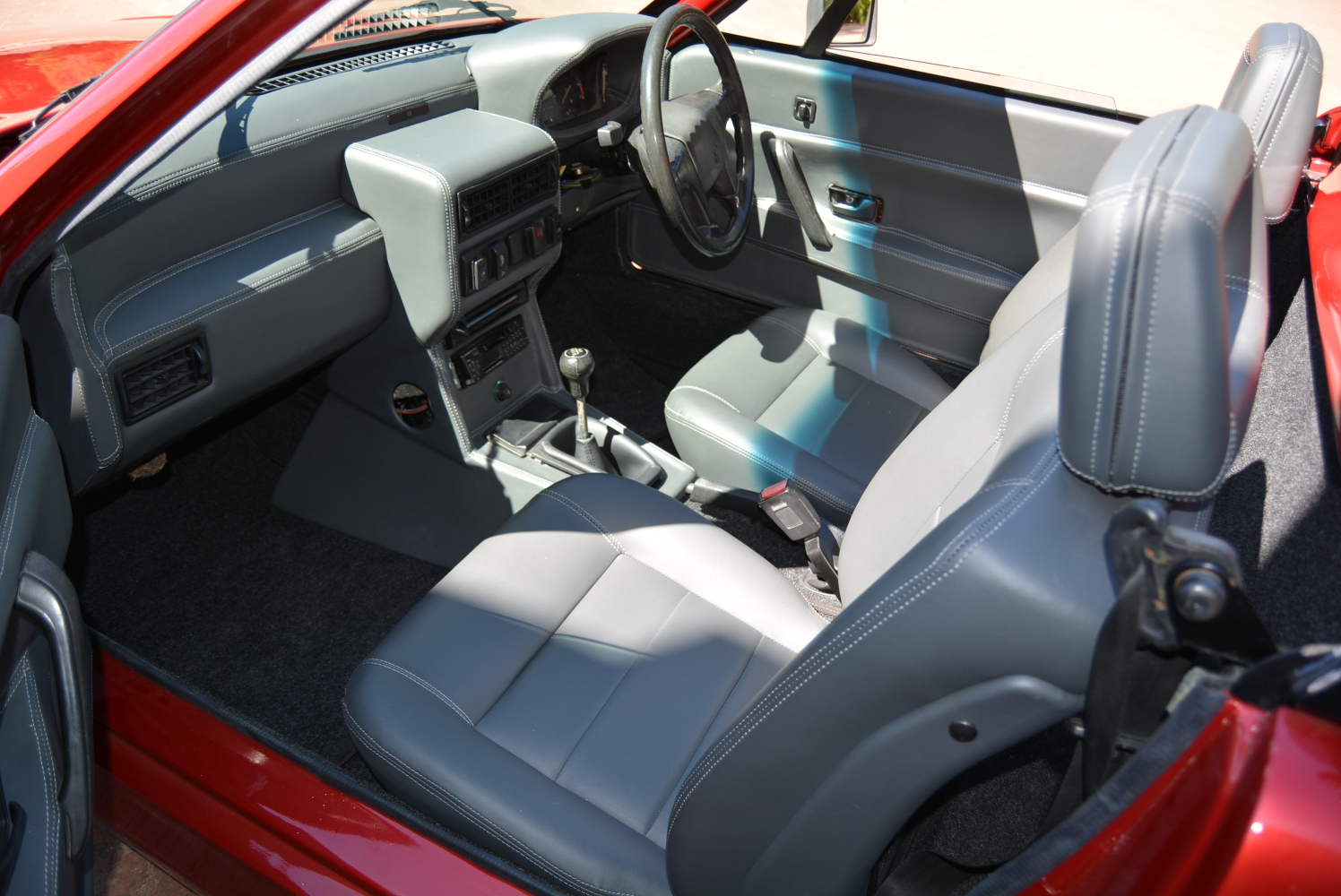 The car’s looks have not really dated. It is a car you get down into, not always easy due to the sharp rake of the windscreen. The cockpit is small and the seats are fixed, a combination that precluded my being able to drive the car safely – I’m simply too tall. So workshop technician Michael van Graan stepped in as chauffeur and a tour of the L’Ormarins Estate. Build integrity appears to be strong. Being in such close proximity to the motor provides an audible – but not too loud – soundtrack to progress. The low-slung nature of the car coupled with its Golf-inspired underpinnings certainly gives it the target sporty drive its creators envisaged. There is a small boot both front and rear but there is no roof or convertible top, so the Caracal needs to go into hibernation if the weather is bad…