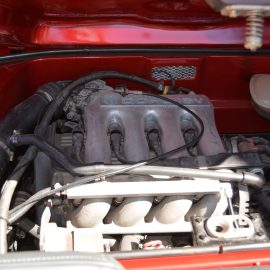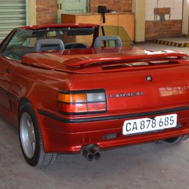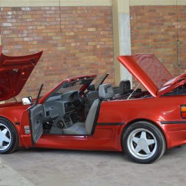 The car’s looks have not really dated. It is a car you get down into, not always easy due to the sharp rake of the windscreen. The cockpit is small and the seats are fixed, a combination that precluded my being able to drive the car safely I’m simply too tall. So workshop technician Michael van Graan stepped in as chauffeur and a tour of the L’Ormarins Estate. Build integrity appears to be strong. Being in such close proximity to the motor provides an audible but not too loud soundtrack to progress. The low-slung nature of the car coupled with its Golf-inspired underpinnings certainly gives it the target sporty drive its creators envisaged. There is a small boot both front and rear but there is no roof or convertible top, so the Caracal needs to go into hibernation if the weather is bad…