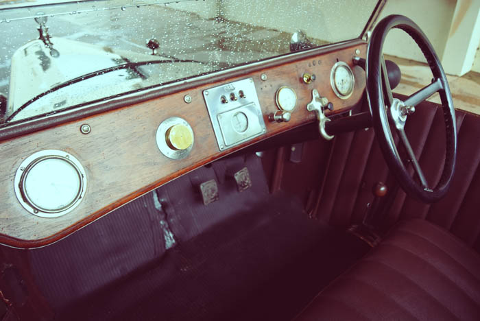 Just as I was getting into the spirit of the occasion, the clouds hanging over the Franschhoek Mountains opened up to put a damper on the frivolity, necessitating a run for cover, but not before I had experienced the joys of vintage motoring. A hand-operated windscreen wiper about the size of a finger is more ornament than use, but for all that this car certainly fits the bill.