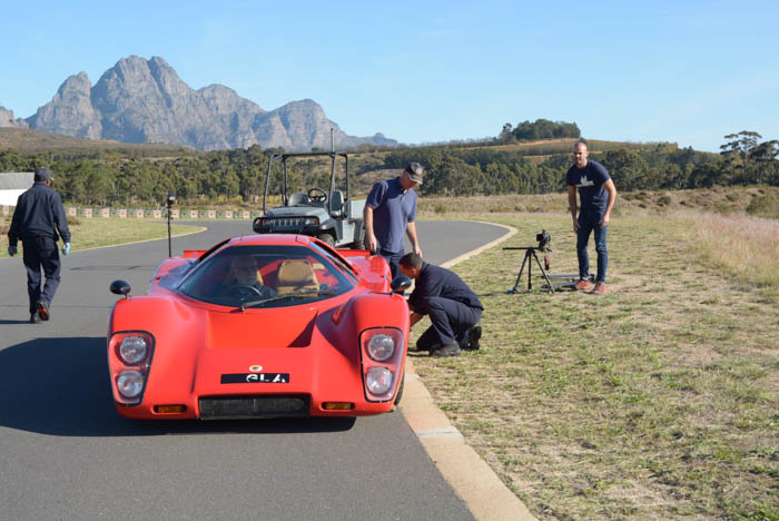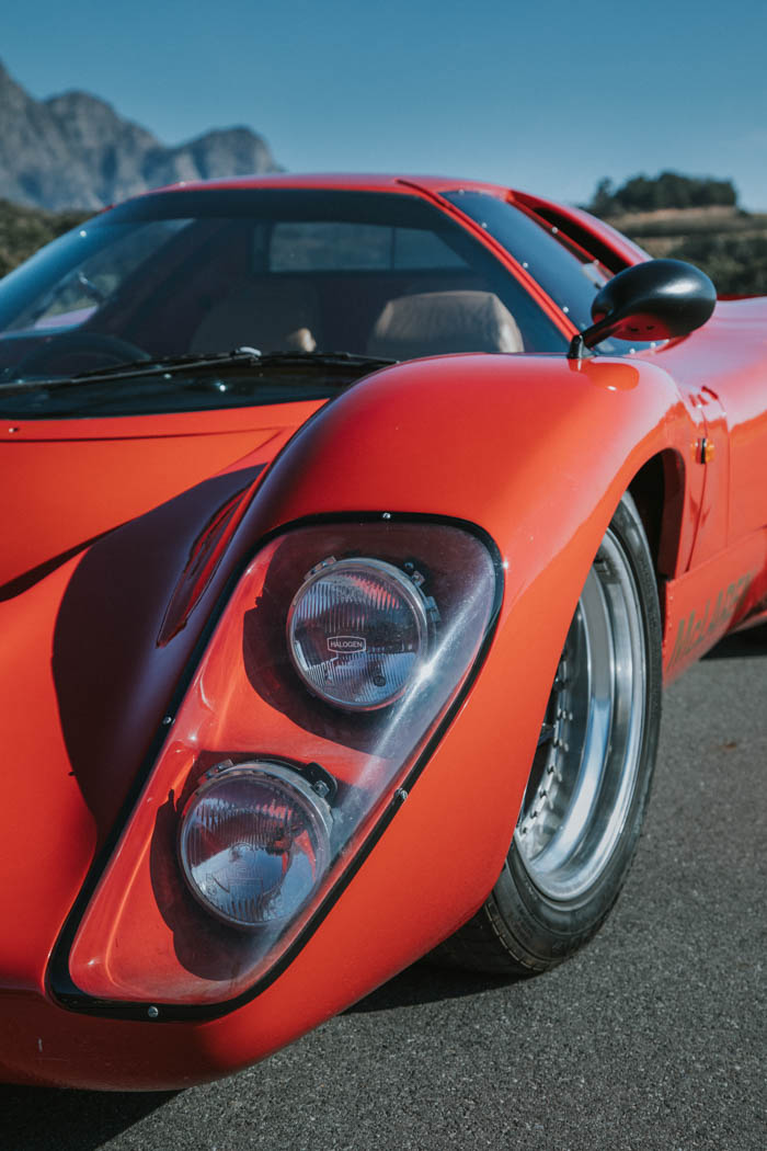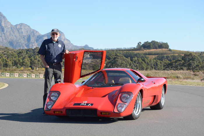 Clip the steering wheel back into place, get help to adjust and fit the racing harness and it is time to fire up. Ignition and fuel pumps on, hit the button and the monster V8 blasts into life with surprising ease and settles into a menacing rumbles. The clutch is not heavy and first snicks into place without baulking. Raise the revs, release the clutch and this road/race machine pulls away with obvious strength of intent. With so much oomph resonating just behind my head, getting up to speed is just four more snicks away and, stimulated by the booming Chevy motor mounted just behind my head, it goes quickly, fast. Although there is only about 275 kW on offer, the torque is immense, and as the car weighs less than 1 000 kg it really starts to hustle as the red line at 5 800 r/min is approached. Zero-100 km/h takes just around 4,5 seconds and top speed is close to 290 km/h. Not brilliant by modern supercar standards perhaps, but remember this is 45-year-old technology.