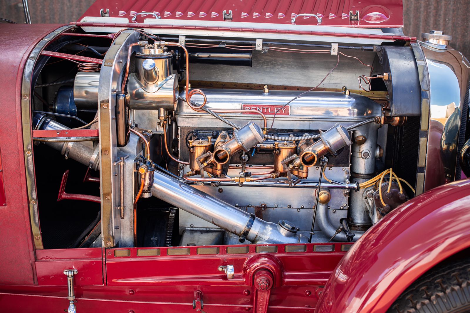 One of the prized vehicles in the FMM collection is a 1928 4½, chassis number AB3358 with engine number AB3360. According to original Vanden Plas Coachbuilder records, this car was originally fitted with “Body No.1518 a 4-seater Sports, long bonnet; black fabric/green/black; 11/1928”. Michael Hay’s book ‘Bentley: The Vintage Years’ published in 1997, states that the car still has the same body, although now it is painted an attractive maroon colour.