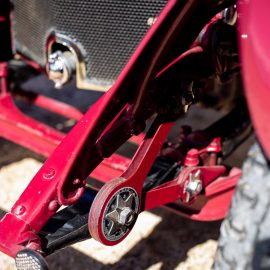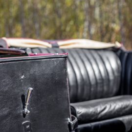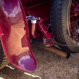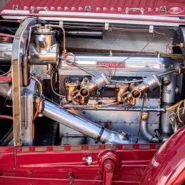 A major contributor to the car’s mass is the cast-iron, in-line four-cylinder engine that that was an amalgam of the 3,0-litre and 6,5-litre motors. With a bore/stroke of 100×140 mm – the same as the six-cylinder 6,5 – the engine displaced 4 398 cm3. The compression ratio of was 4,8:1 and it had an Autovac feeding the twin SU carburettors coupled with dual ignition and Bosch magnetos. Peak power was 82 kW at 3 500 r/min with a rev limit of 4 000. If this sounds a little bit agricultural, the engine did have a single overhead camshaft operating four valves per cylinder inclined at 30 degrees, along with Duralumin rockers, which was technically advanced for the time. However, the four-speed gearbox has no synchromesh so requires some familiarity, timing and dexterity to operate smoothly when changing up or down. The rear axle ratio was 3,53:1 and the top speed was 148 km/h.