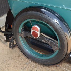 The car is unrestored – a so-called ‘oily rag’ example, a term denoting a vehicle that has not been renovated. Its looks are typical of the period, the green paintwork and wooden artillery wheels highlighted with gold pin-striping that is fading only in places, adding much revered patina to the car. Opening the interior door latch and stepping up onto the seat straightaway reveals a driving position that is a bit cramped and distinctly ‘knees up’. Push and turn the key, depress the floor starter button and the motor fires up with a quick and steady idle. Depress the clutch, wiggle the wand-like gear lever to the left and back into first, release the adjoining handbrake and the Rugby kicks off with typical immediacy before quickly running out of revs. The central accelerator has short travel but once into second the car pulls with ease – it is pretty much a ‘do anything’ gear. Once up to speed, top gear comes into play and the car cruises at a comfortable gait.