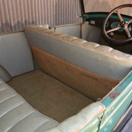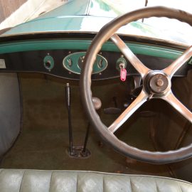 Considering the rudimentary chassis and simple springing, the car provides a very pleasant ride on its 4.75/5.00×18 balloon tyres. Directional stability is excellent, and sitting close to the 16-inch four-spoke steering wheel helps with arm-twirling in tight confines. But to be fair, the effort required to operate the worm-and-gear mechanism is not unduly heavy. The thermometer atop the radiator is a little loose on its mounting and gently rotates due to wind and vibration, a forgivable quirk given the car’s 96-year lifetime, an age it carries very well.