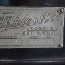 The chassis plate on FMM’s four-door five-seater Tourer shows it is based on an M2, the only anomaly being the body having no exterior door handles, which photos of other Rugby’s of the time suggest should have been the case. Nevertheless, it was supplied by DH Saker & Co Ltd, a company founded n 1902 by brothers DH and Charles Saker that in 1957 merged with GK Lindsay to form the first motor concessionaire firm in the Transvaal, Lindsay Saker.