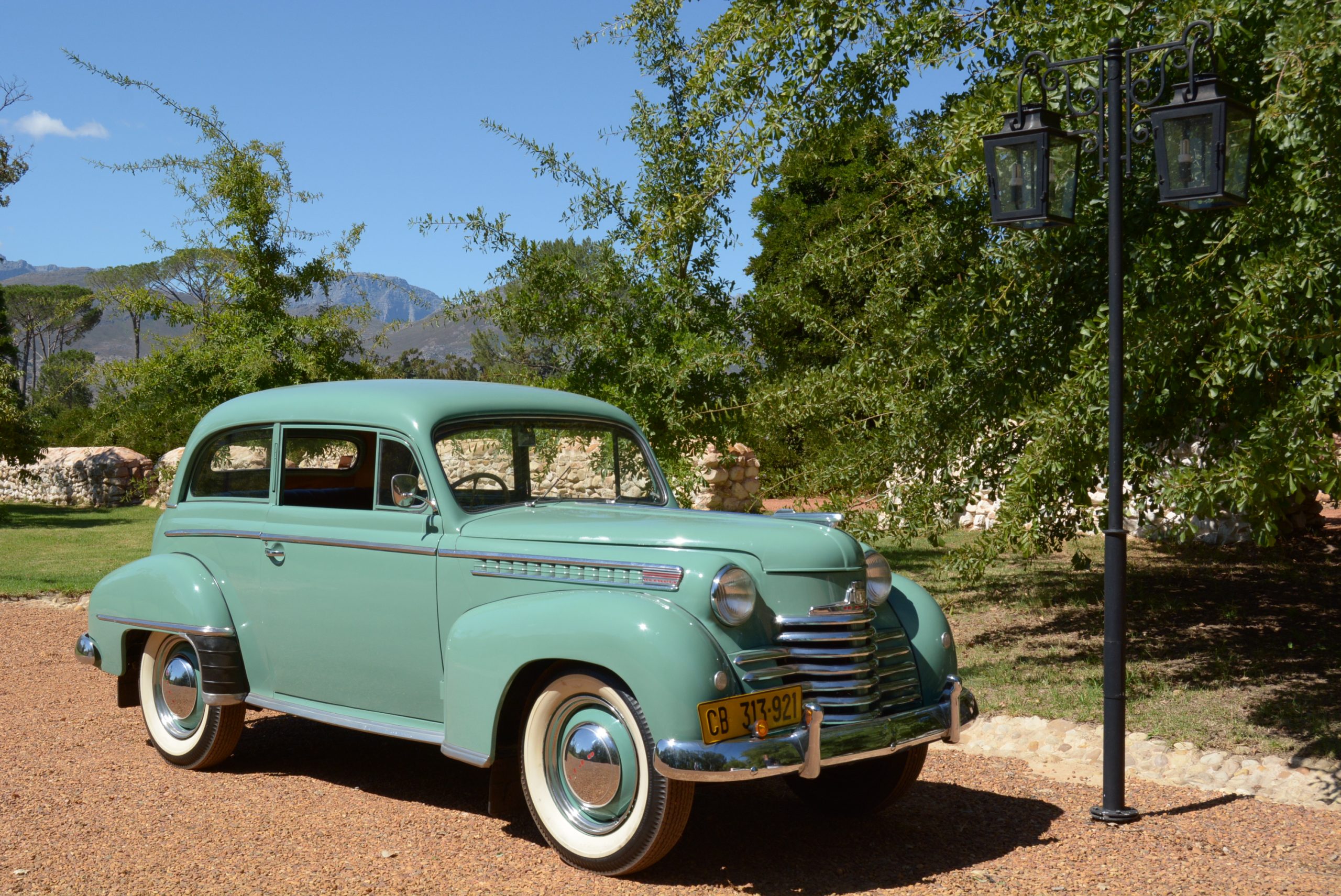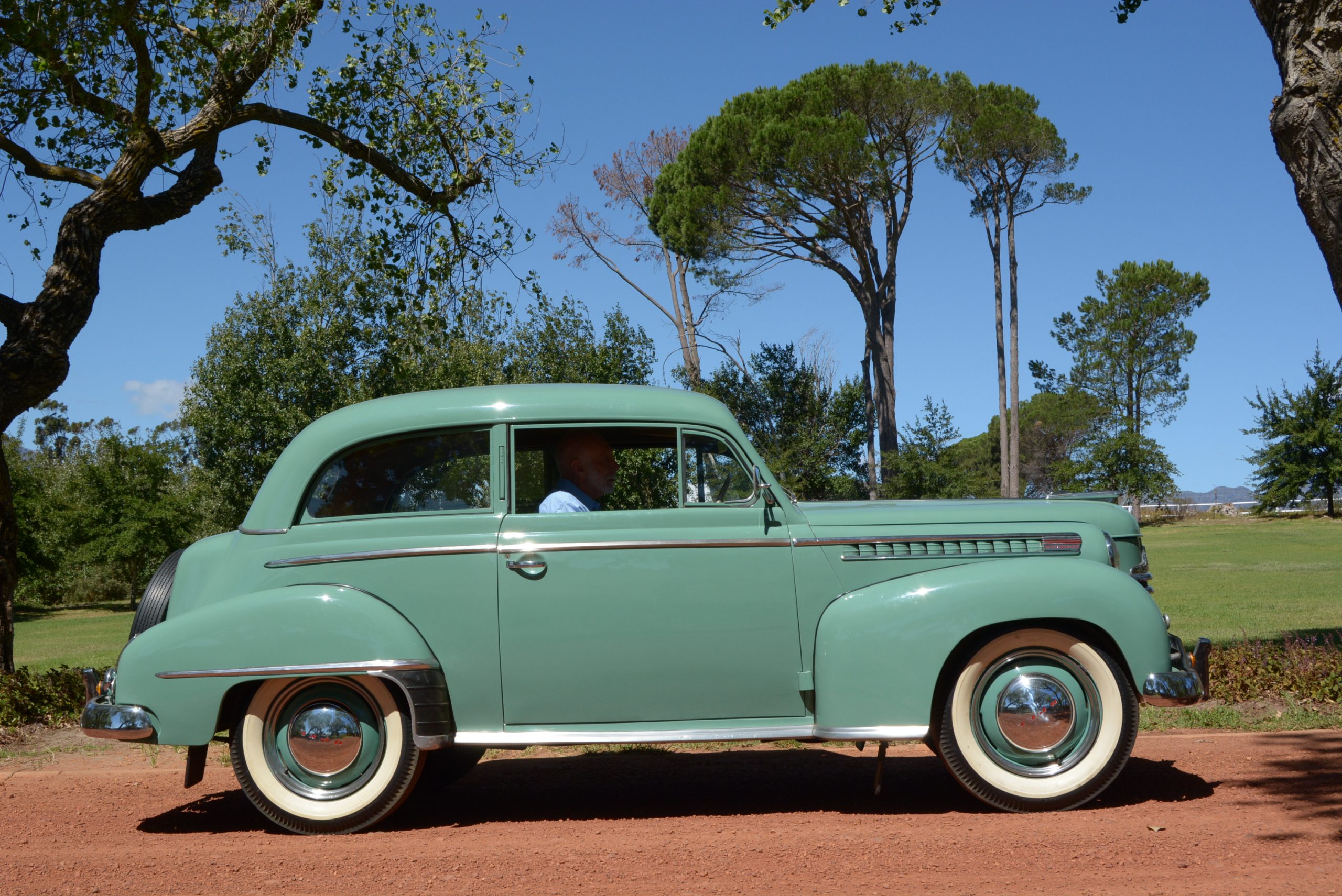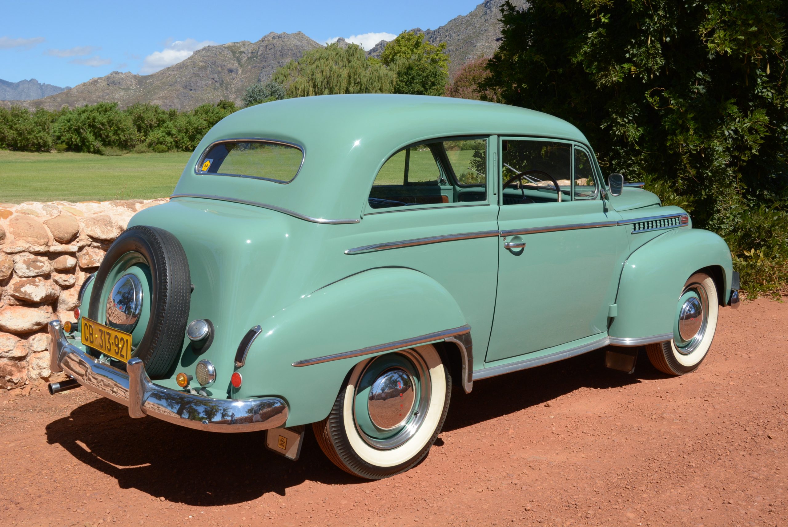 FMM’s 1950 two-door sedan was built at GM’s plant in Port Elizabeth. It was previously part of the Bertie Bester collection and is thought to be one of only two still in the country – Olympias are not a familiar sight, even at overseas classic car shows. This car is in remarkably good condition, its glistening green paintwork and bold, upright stance lending it a period elegance that is all the more becoming because of its rarity. A bold grille, set-back and with faired-in headlamps, bonnet-side louvres, stylish strips of chrome trim and white-wall tyres are just some of the body’s stylish features. Admittedly, the truncated tail with its exposed spare wheel does look a little at odds with the Olympia’s otherwise flattering looks, but from any angle it catches the eye.