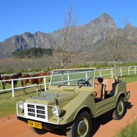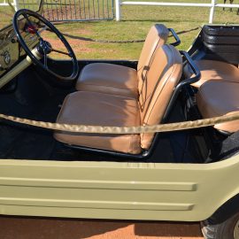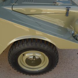 The Munga Type 4 in FMM’s collection was manufactured in 1960, and while its early history is not known, it eventually was bought by Jele de Vries in Johannesburg. Jele refurbished the vehicle before selling it on to well-known SA collector Bertie Bester, from whom FMM acquired it in 2007. The cylinder head and fuel lines were corroded and the brakes needed attention, but these were easily repaired and the Munga now oozes functional charm. The overall design is boxy and basic – almost Tonka toy-like and none the worse for that – measuring 3 445 mm long and 1 705 mm wide and having a surprisingly heavy dry weight of 1 085 kg. An interesting feature is the sharply sloping front fenders that prove invaluable when cresting blind rises as the design helps the driver to see what is immediately ahead rather than being confronted with a view of the sky over a bulging bonnet.
