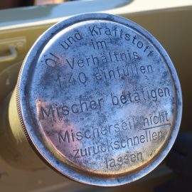 The engine first used to power the Munga was DKW’s familiar 896cc three-cylinder two-stroke that punches out a mere 27 kW at 4 200 r/min – later on, a 33 kW version was used. A three-speed gearbox was standard with a four-speed optional, which is fitted to FMM’s example. Four-wheel drive was permanent and the transmission layout included a reduction gear operated by a T-bar handle sprouting from the dashboard. The layout meant there are, in effect, eight forward and two reverse gears. But pains were taken to advise that low ratio should only be used at very low speeds, in reality it being a creeper setting with a lowest ‘speed’ of just 3 km/h. So although the engine’s power and torque outputs are minimal, having a octet of ratios to choose from does give the Munga plenty of the desired ‘go anywhere’ capability – it just happens to be slowly. A gradient climbing ability of 70 per cent is quoted and the fording depth is given as 500 mm.