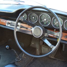 As well as the styling, the standard 911 plus-points of independent suspension and disc brakes all round plus accurate rack and pinion steering are all there to be enjoyed. Pedals are characteristically offset to the left and this car has a wood inlay in the facia as well as the full-house quintet of gauges – like the gearbox, likely a non-US specification item.