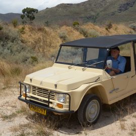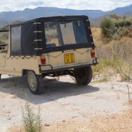 On the open road it is easy enough to keep the Méhari at a steady cruising pace, but off the beaten track you have to keep the flat-twin’s revs up to avoid getting bogged down. The ride is, as one would expect, pleasantly supple, but over rough ground the body rattles and squeaks a bit but again no more than one would expect. You would have to be young to drive from Liége to Dakar and back without complaint, but it is all part of the adventure that the youngsters who undertook those rally-raids must have enjoyed.