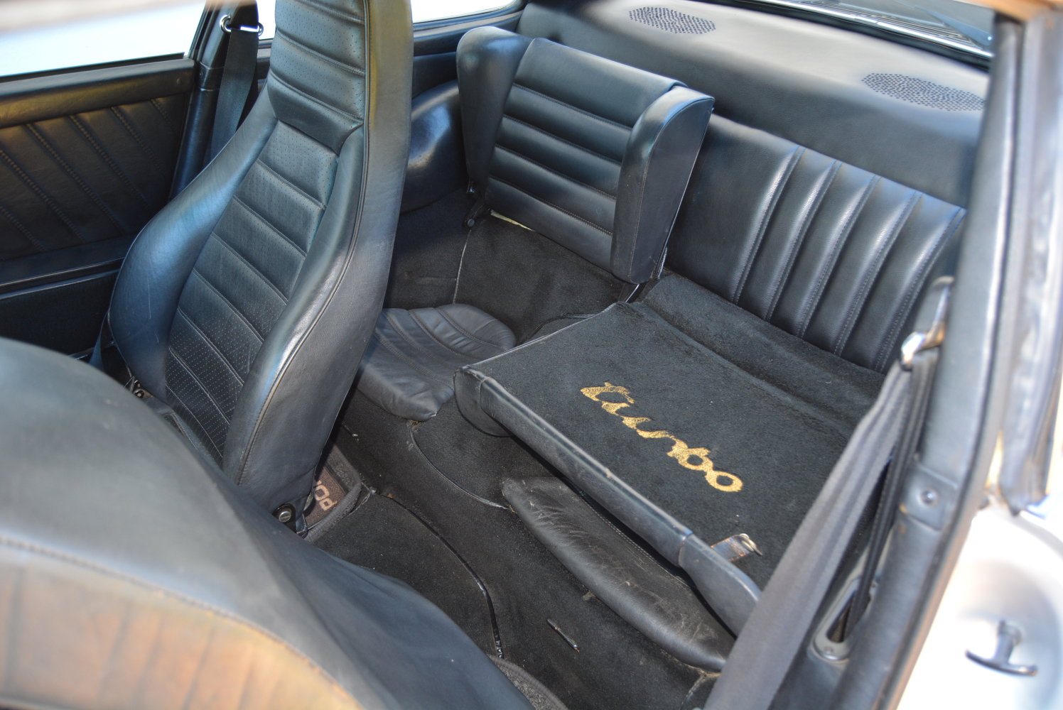 It fires up with a long turn of the key and settles into an easy idle. The gearbox on this 150 000 km car is a bit slack so care will be necessary not to hook the wrong gear when pressing on. Pottering around is no real hardship except for the steering which is ‘sticky’ because of the grip of the tyres. Quiet and civilised. The leather seats have integral head restraints: the +2 rear seats with fold-down backrests are more akin to a child’s seat than anything an adult would fit into. This is not a family car.