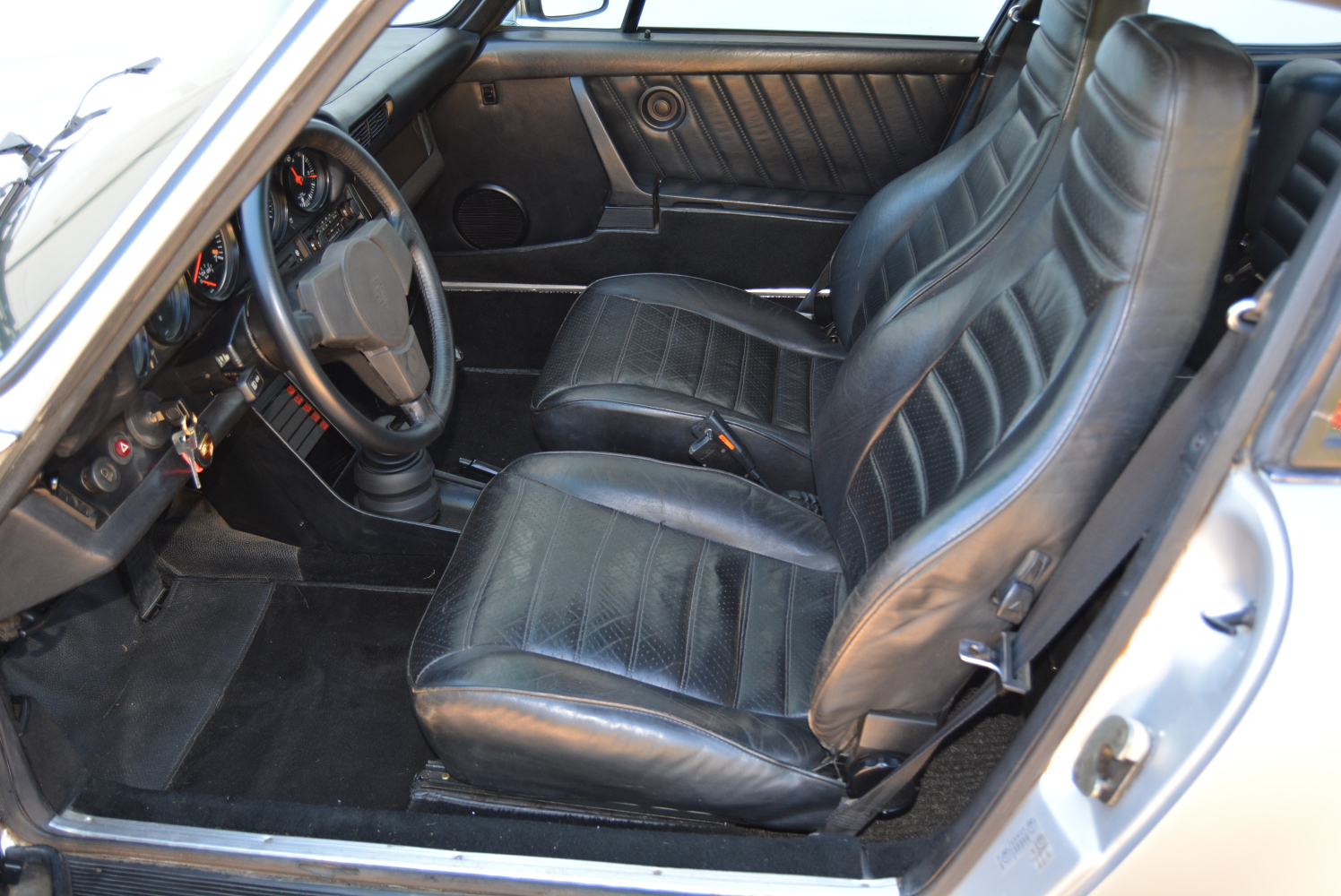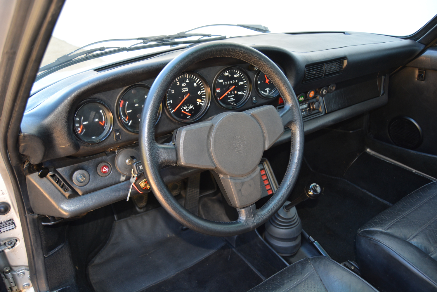 FMM’s 1979 Turbo has had only one previous owner, and the car is in superb condition. The floor-mounted pedals on the left-hand drive 930 are offset to the right, but the slightly skew driving position is not that apparent once behind the fixed, padded three-spoke steering wheel, which sits close to the full-width facia. Although there is plenty of seat adjustment, for someone as tall and long-legged as me the position is a tad compromised yet somehow not too problematic. Five dials house the comprehensive instrumentation, which includes a central rev counter red-lined at 7 000, a 300 km/h speedo and a boost gauge. Oh, and there is an original Porsche-branded radio/cassette player.