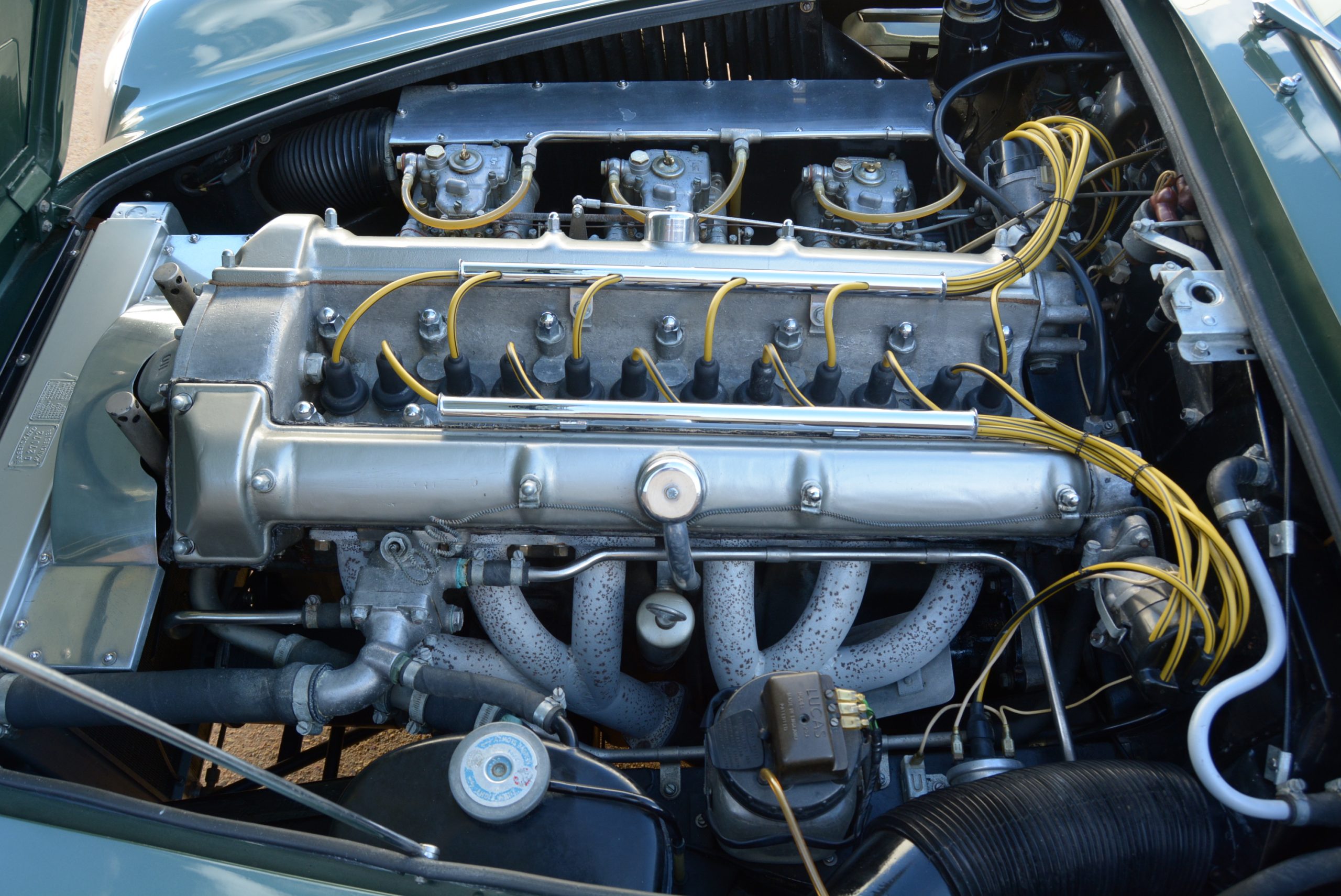 The DB4 had been fitted with a new 3670cc in-line, six-cylinder, twin overhead-cam engine designed by Aston’s renowned Polish engineer Tadeusz ‘Tadek’ Marek. The all-aluminium seven-main-bearing motor had equal bore and stroke dimensions (92×92 mm) and was fed by twin SU carburettors. It pumped out 179 kW at 5 500 r/min and 325 N.m of torque at 4 250. Mated with a David Brown four-speed gearbox, top speed was 225 km/h and 0-60 mph (96 km/h) took nine seconds while 0-100 mph (161 km/h) took 21 seconds. Thanks to servo-assisted Dunlop disc brakes all round, the DB4 could do 0-100-0 mph (0-161-0 km/h) in less than 30 seconds. Overdrive became a Series 2 option in 1960, and a Vantage version with an extra 19 kW became available with the Series 4.