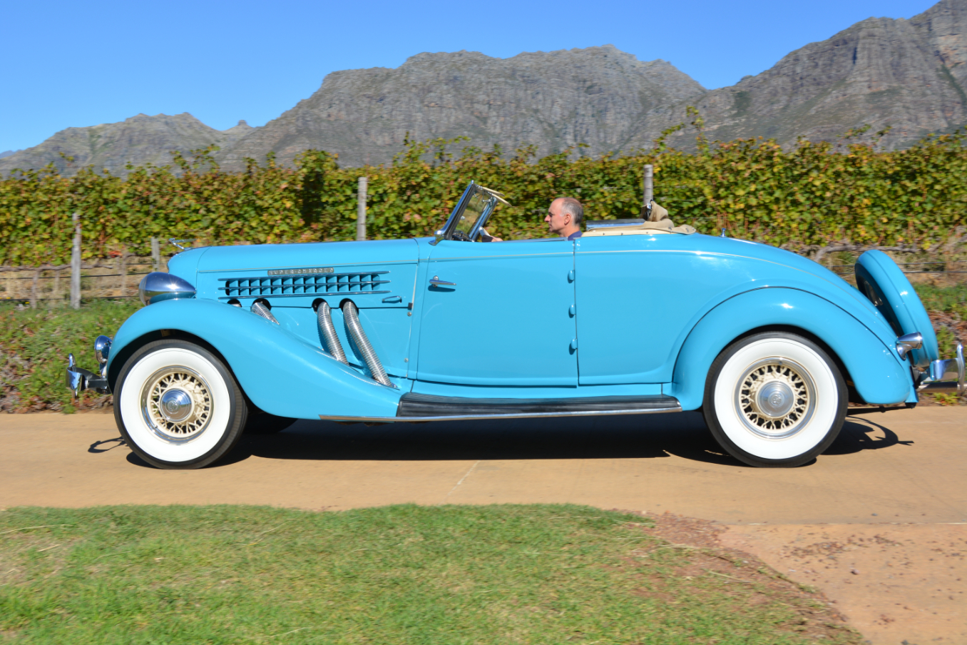 FMM’s 1936 852 Speedster, one of the last of the line, was acquired from the Bertie Bester collection and has just undergone a mechanical refurbishment after the block became porous with resultant unwelcome mixing of oil and water. Replacement Lycoming engines are scarce but a standard straight-eight block was located in White River, purchased and together with the original motor sent to Bastick’s Engine Rebuilders in Woodstock, Cape Town for a rebuild. The new block’s porting had to be modified in order to accept the supercharged induction system but the crankshaft, con-rods and pistons were salvaged from the original engine.