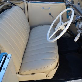 During this time Cord employed Alan Leamy to design a new car and he came up with a range of models based on the company’s rigid straight-eight chassis that featured channel-section side members and cruciform bracing under the floor. The front axle was a forged beam and half-elliptic springs were used front and rear. Hydraulic dampers and Lockheed drum brakes were fitted to all four 16-inch wire spoke wheels. Body styles included a two-door Brougham, a coupé, a four-door sedan, a Phaeton sedan and a convertible, but it was the two-door, two-seat Speedster that captured the Hollywood spirit.