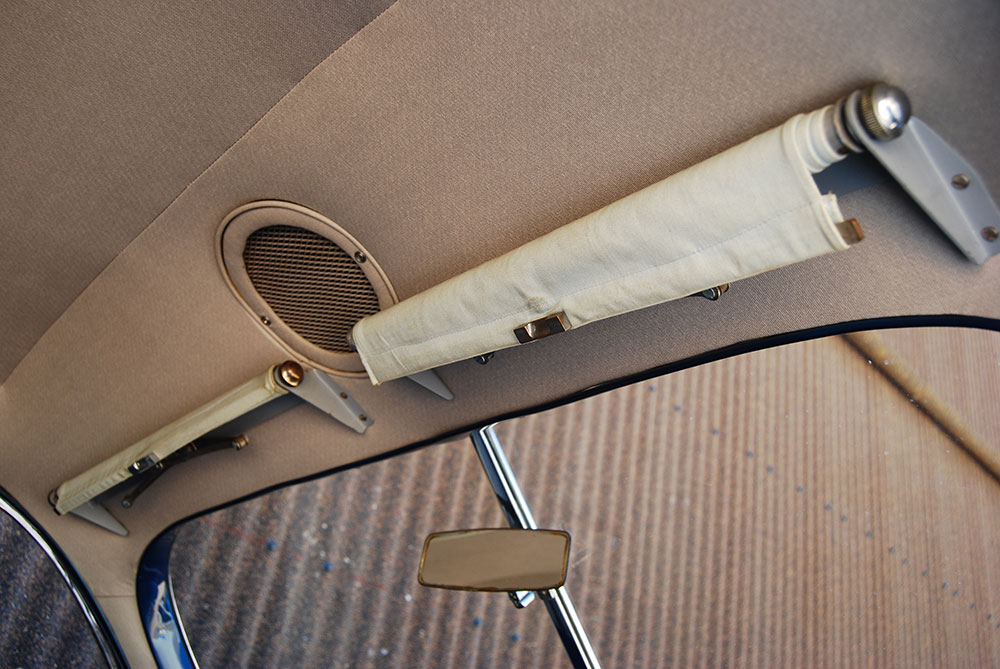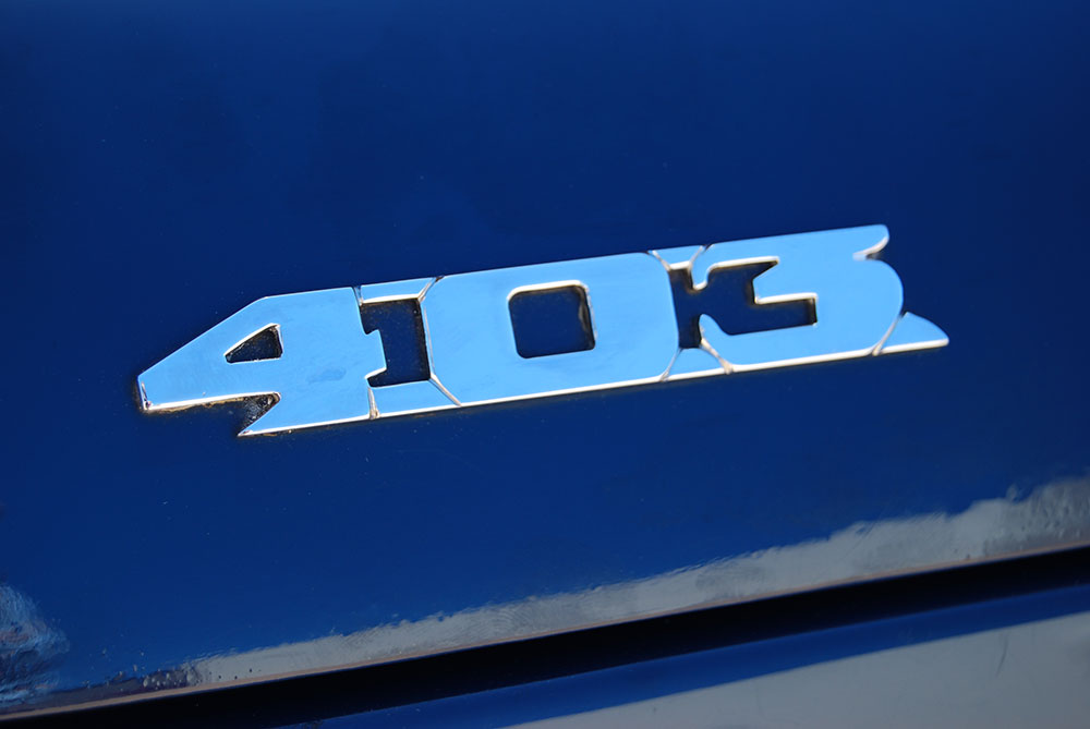 The 403 is a striking car, the deep blue paintwork of the FMM’s example emphasising the flowing lines, the two-door body disguising the fact that it is a practical four seater – five at a pinch. It is a big car – 4 864 mm long, 1 702 mm wide and 1 524 mm high – but the proportions are so good that it does not appear cumbersome, the sloping rear and large side-glass area helping to balance the long bonnet.