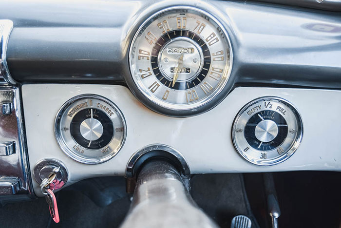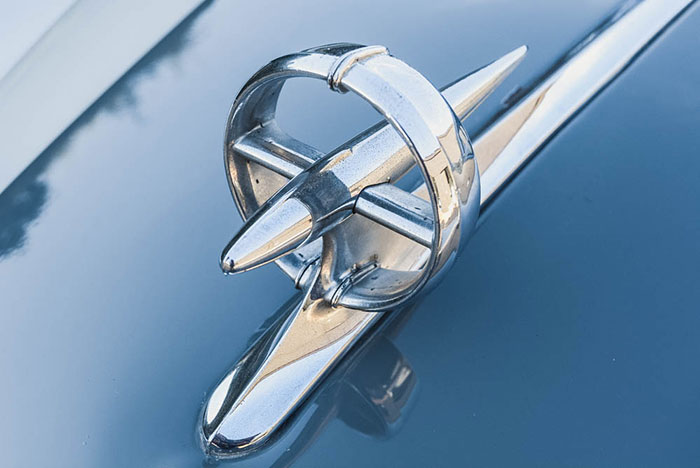 Insert the key, turn the switch, depress the accelerator and the motor spins into life with that effortlessness so typical of big capacity American engines of the time. Engage first on the conventional ‘three on the tree’ gearshift and pull away; no fuss, no bother. There is a sight emblem at the pointed end of the bonnet and once up into top gear, the engine’s healthy torque output makes for an easy cruising gait. The straight-eight’s Fireball moniker is a bit misleading, though…