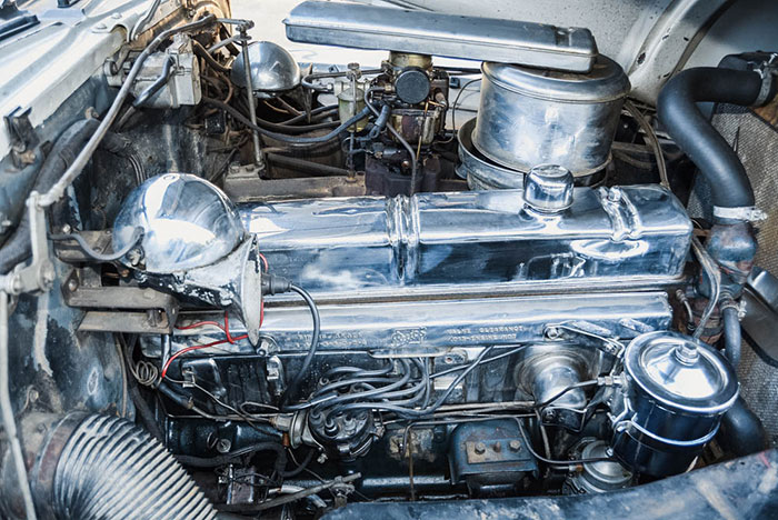 Under the heavy, centre-hinged bonnet, which is released by depressing and pulling on an ornate lever on either side, lies a five-main-bearing Fireball straight-eight engine, which has cast-iron pistons and mechanical valve lifters. Running on a slightly higher compression ratio – 6,6:1 vs 6,3:1 – than the Series 40, maximum power was 86 kW at 3 600 r/min, an increase of 3,5 kW, and peak torque was 287 N.m at 2 000. Power was transferred to the rear axle via a torque tube – Buick did not adopt driveshafts until 1961. Semi-floating axles and a single universal joint, automatically lubricated from the transmission, complete the drivetrain layout. With a final drive ratio of 4,45:1 the theoretical top speed was 123 km/h (76 mph) and the 0-100 km/h acceleration time was 19,6 seconds.