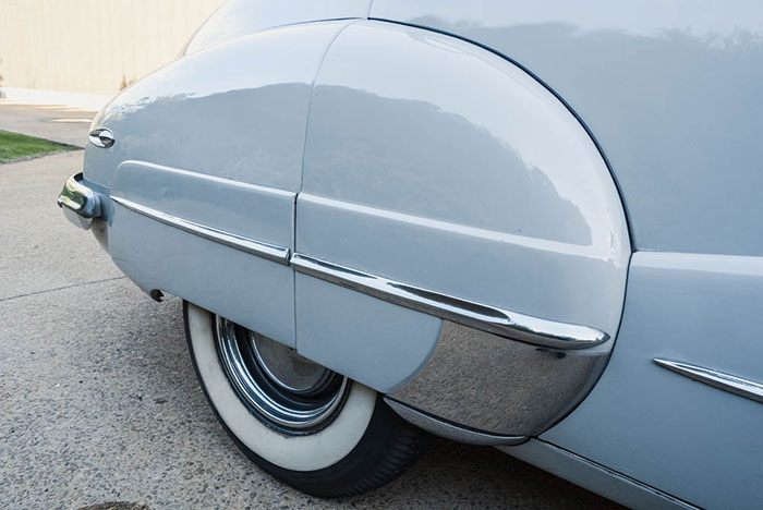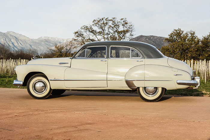 The Super combined the Series 70 bodywork with the more economical Series 40 running gear. Mild changes were made to all three series over for the next two years leading up to the last of the generation’s life span appearing in 1948. The Super was a favourite amongst Americans in 1947 and for the new model year there was a new body emblem, Super script was added to the front fenders, and the name also appeared in a badge on a crossbar between the bumper over-riders both front and rear. A stainless-steel strip ran from the front wheelarch along the bodyside and onto the fully-enclosed rear wheelarch. Chrome hub caps and trim rings adorned smaller, 7.60×15 wheels and tyres, which reduced the car’s height to 1 694 mm. The car was 5 398 mm long, 1 996 mm wide and had a kerb weight of 1 800 kg.