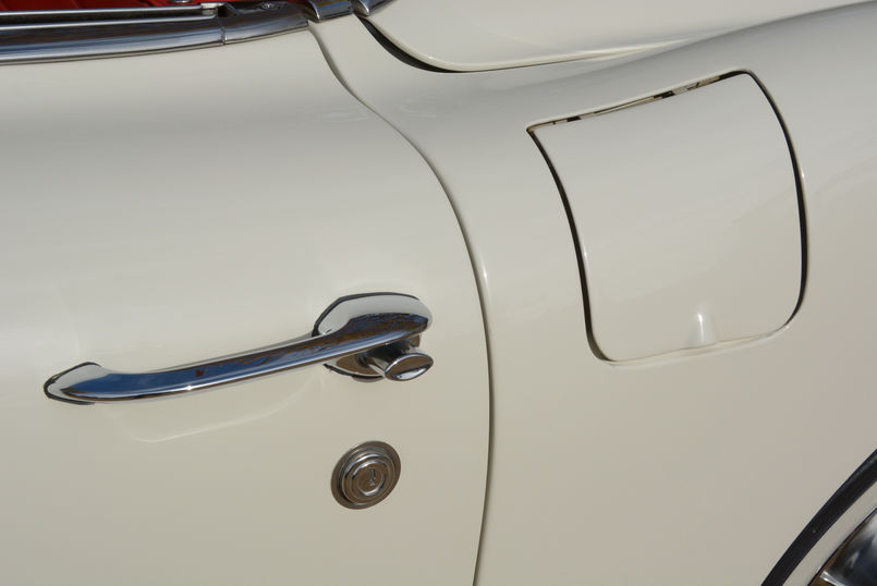 Development began in late 1951 under the direction of renowned GM stylist Harley Earl and was known as Project Opel. There was nothing sophisticated about its specification, which entailed packaging off-the-shelf Chevrolet components into a two-seater body, which for expediency was to be made from a new material called glass-reinforced plastic (GRP). The chassis featured box-section side rails and a strong, central cross-member set low enough to allow the drivetrain to fit above it. GM’s Saginaw recirculating ball steering was adopted along with coil spring suspension up front and semi-elliptic leaf springs at the rear, the latter with outrigger mountings. The parts bin route did, however, mean the adoption of the trusty but far-from-sporty 235 ci (3 851 cm3) Stovebolt 6 ohv engine but upgraded with a high-lift cam, hydraulic lifters and triple Carter side-draught carburettors, helping the now-called Blue Flame 6 to produce 150 hp (112 kW) at 4 500 r/min and 223 lb.ft (302 N.m) of torque. Space precluded fitting GM’s three-speed manual gearbox, so a two-speed Powerglide was the transmission choice.