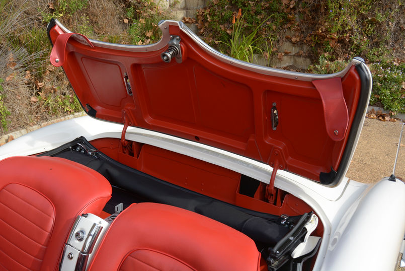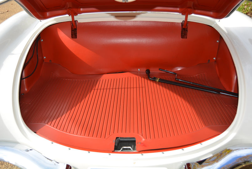 The ’59 Vette featured here is a fabulous example of the C1 quad-lamp models, which lasted until 1962. Finished in Snowcrest White with a red vinyl interior, it resembles the colour combination of the first Corvettes. Its condition is reflected in having won gold in its class at the 2018 Concours SA, and if anything epitomises ‘having the show to match the go’, then this is it. The ‘go’ in this case is provided by the dual four-barrel Carter carburettor V8 option that produces 245 hp (183 kW) at 5 000 r/min and 300 ft.lb at 3 800. This car was sold with a three-speed ’box but was later fitted with a four-speed, its only non-original feature. With this powertrain, contemporary tests give a 0-110 km/h of 7,6 seconds and a top speed of 189 km/h.