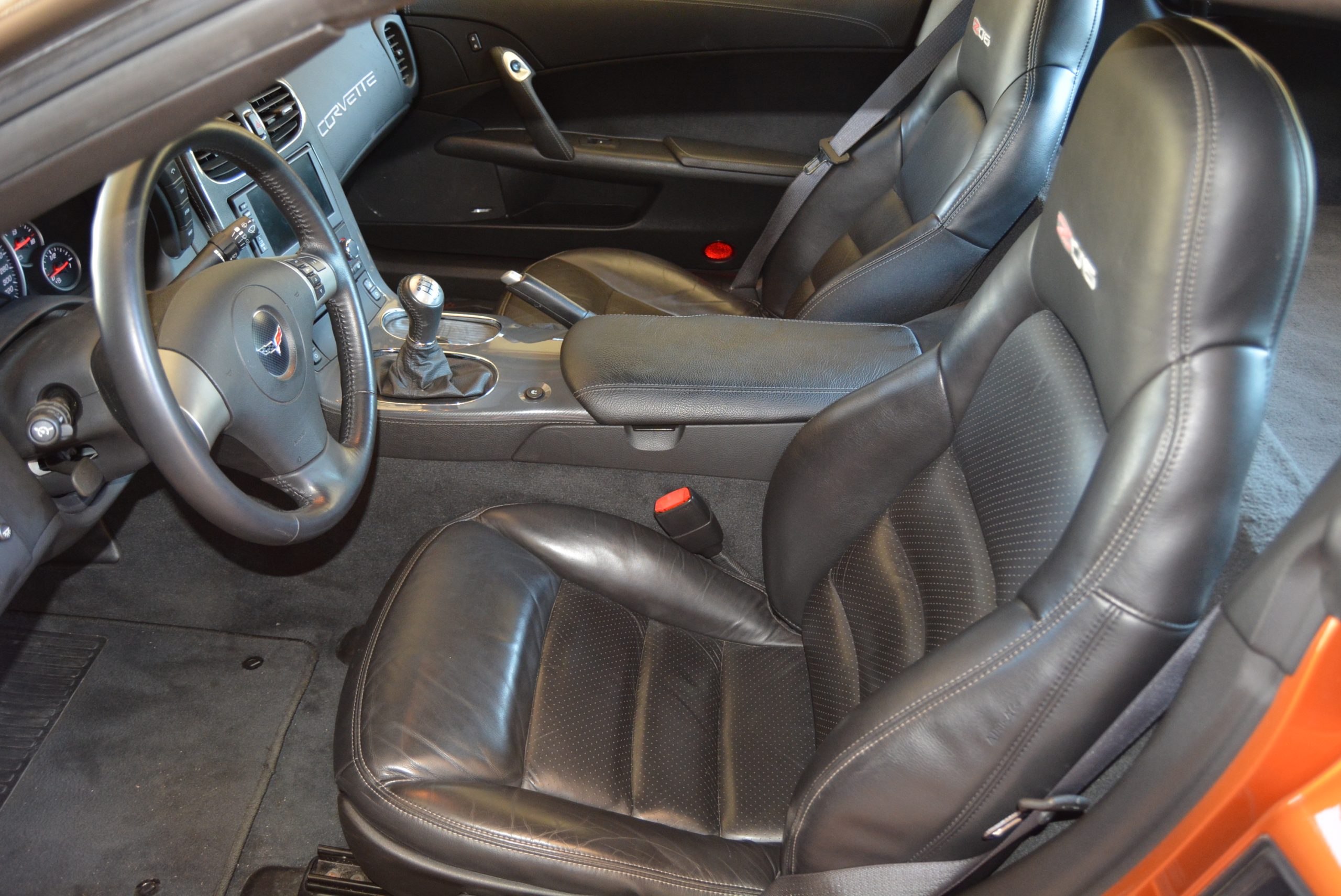 The C6 was more an evolution of the preceding C5 rather than a complete makeover. Wider front and rear fenders and a front air scoop were the obvious visual differences, along with stiffer springs, shocks and anti-roll bars. The adoption of an all-aluminium monocoque was a Corvette first, and together with the use of some magnesium parts and carbon fibre panels (the footwells have a carbon fibre skin and balsawood core) helped keep weight to a respectable (for such a large car) 1 440 kg. Moving the battery to the boot helped overall weight distribution. Improved build quality was a C6 target, and the Z06 came equipped with leather trim, high-intensity discharge headlights, dual-zone air conditioning and a heads-up-display with track modes and a g-meter as standard.