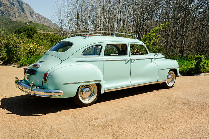 FMM’s bright green 1947 Suburban Fluid Drive is quite an imposing sight and the rear-hinged (‘suicide’) rear door is a surprise, although useful in the DeSoto’s limousine and taxi model variants. As the output figures suggest, the engine is what can be termed a ‘lazy six’ – powerful enough to do the job but do not expect any fireworks. With a 1 900 kg kerb weight, performance is leisurely, the easy-going transmission precluding having to keep things on the boil. But what the engine proved to be is robust and reliable if properly maintained. According to a report in local motoring historian Fred Schnetler’s book A Century of Cars, anything up to 300 000 km was usual before the engine needed attention, and once they reached half-a-million miles (800 000 km), the tour operators sold them to taxi operators.
