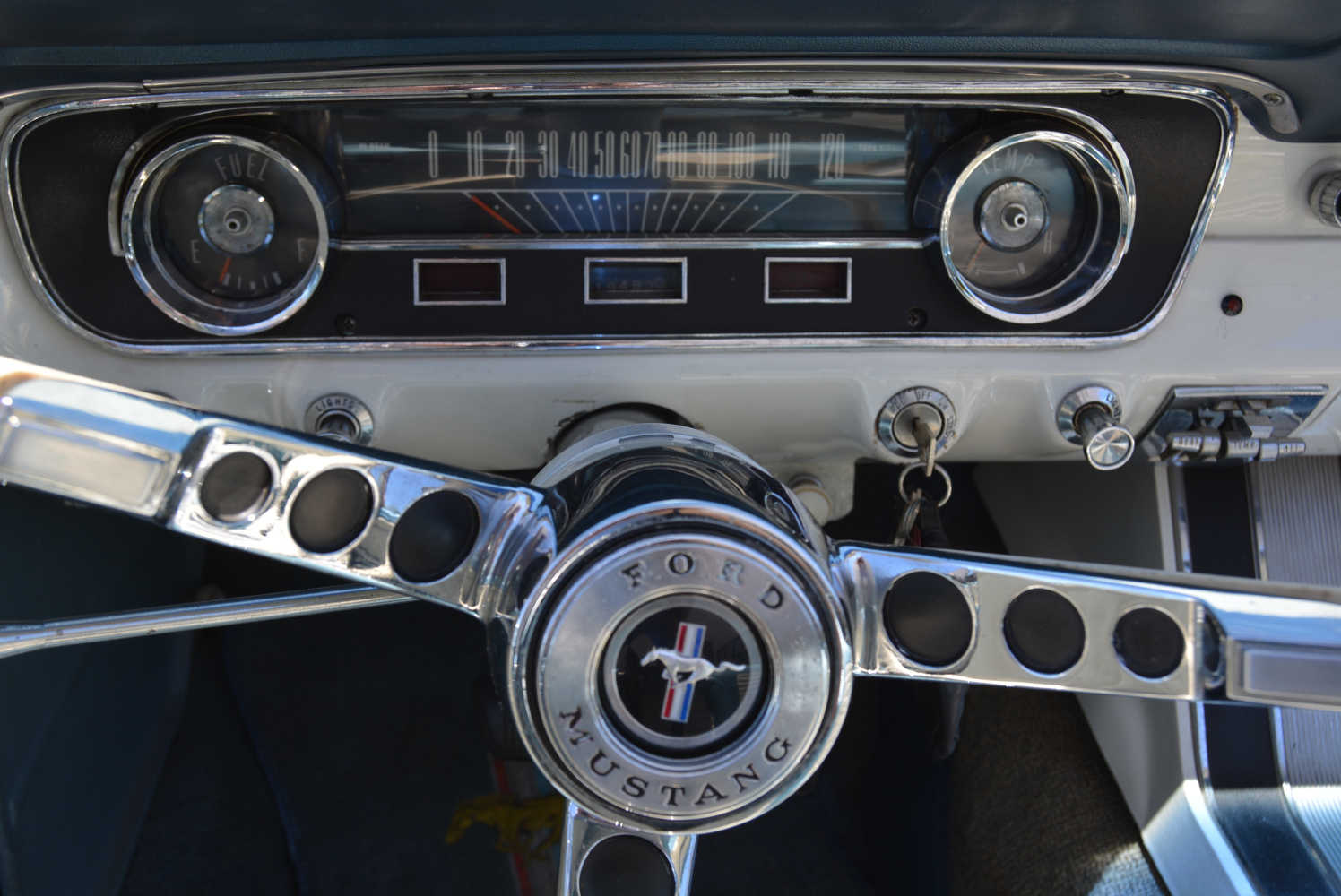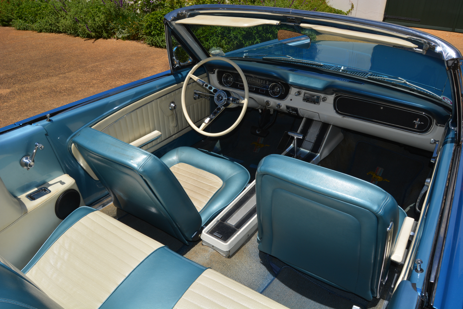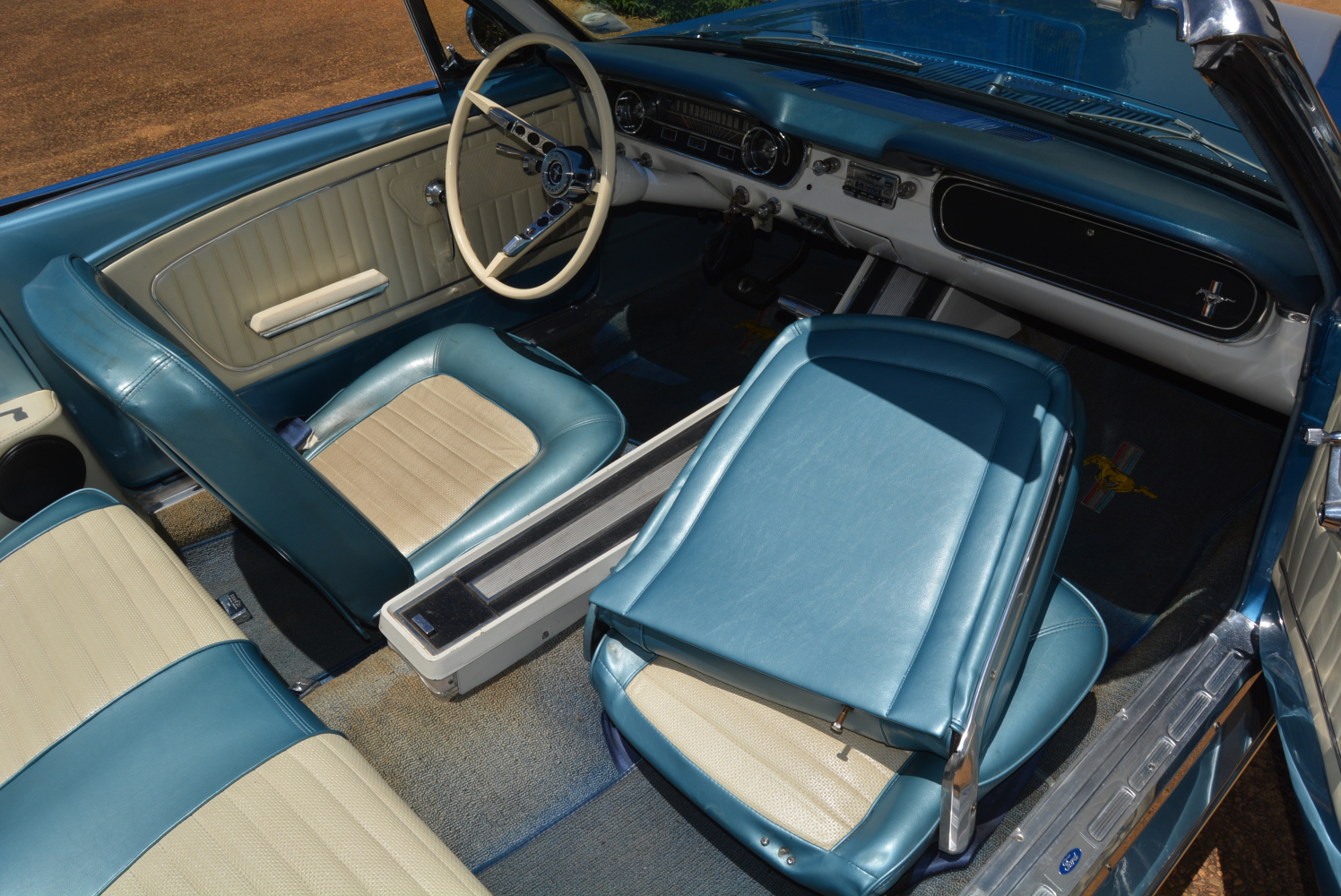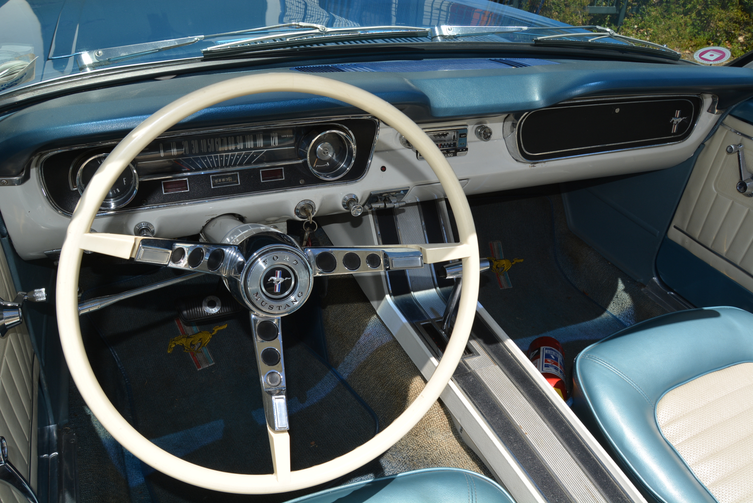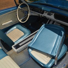 Since it was introduced four months before the 1965 production year, the earliest Mustangs are widely referred to as the ‘1964½’ model by enthusiasts, but all were marketed by Ford as 1965 models. Standard equipment for the early 1965 Mustangs included black front seat belts, a glove box light, and a padded Falcon-derived dashboard.