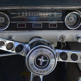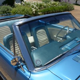 It is fitted with the base, small-block 289 that apart from the 150 kW at 4 400 r/min, offers 382 N.m of torque at 2 400. It has the three-speed autobox that helped provide a top speed of 193 km/h (120 mph) and a 0-100 km/h time of 8,9 seconds. But at this time in its career, the Mustang was plain and simply a sporting car rather than an out and out sports car – Carroll Shelby soon put that to rights!