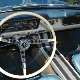 Once the rumbly V8 was up and running, the Mustang was sheer bliss. The two-tone bucket seat helps provide a comfortable driving position. Performance is ample and effortless – prod the accelerator and it responds with a requisite roar – but rather relax and revel in the al fresco experience, enjoying the sights and sounds around you. The dished, colour-coded three-spoke steering wheel does its job without much effort, but it is important to keep in mind that American cars of the time – even sporty ones – were hardly nimble through the twisties. It’s more for California Cruisin’… The ride is firm, just as expected, but not an issue. All this, AND capable of carrying four passengers, to anyone with petrol, in their veins, this is a dream machine.