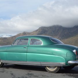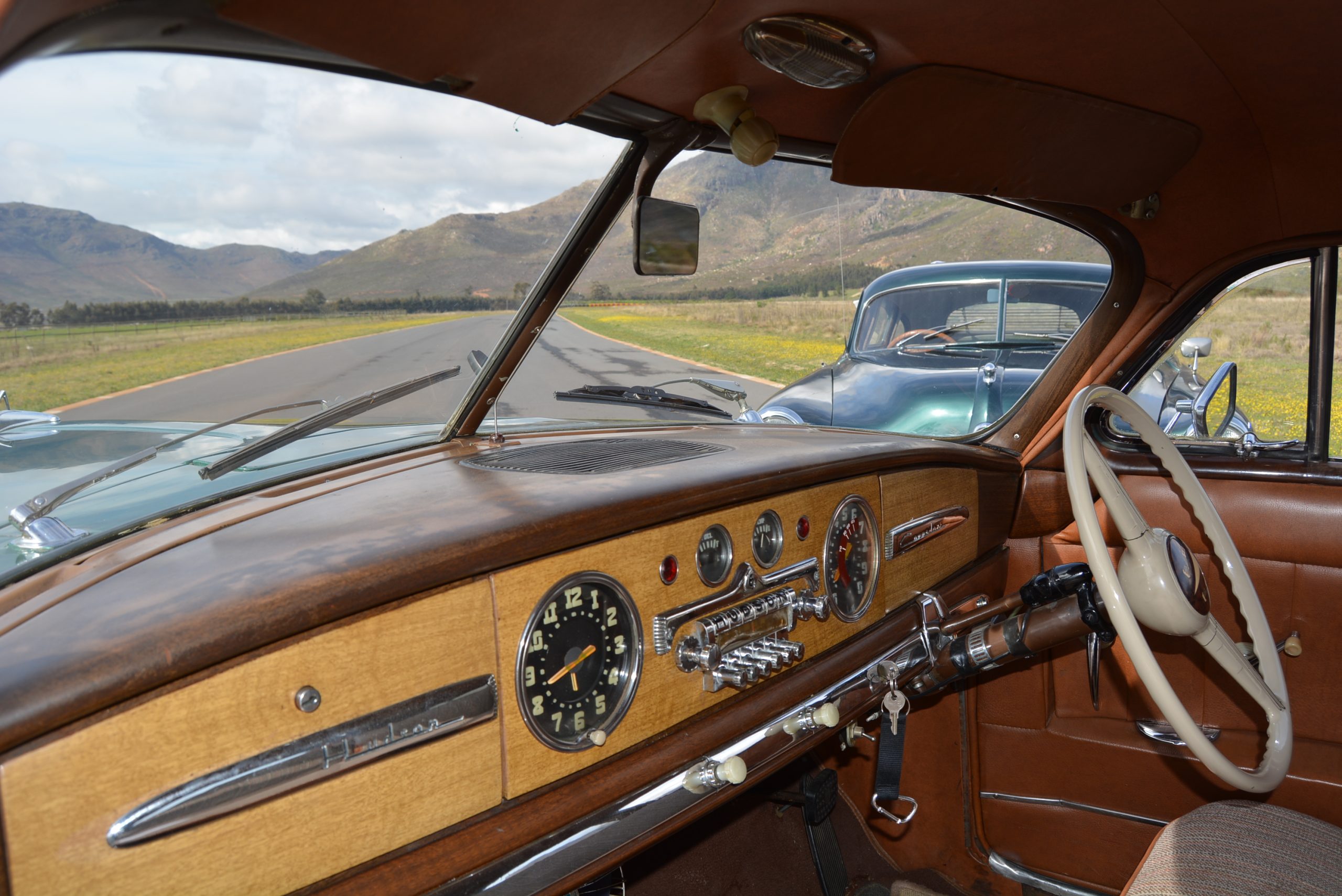 So, doing my best Hoke impression and in company with FMM’s 1948 Club Coupé, I set about driving Miss Daisy. Tipping the scales at just over 1 600 kg, the Hudson is no sprinter but the motor feels – and is – strong. Thankfully, the big wheel is not too heavy to twirl when manoeuvring, but such bulk needs consideration when pressing on along twisty roads. For sure, roll is hardly evident and looking through the split windscreen, the car exudes a kind of majesty when cruising along, the shallow windows adding an air of mystique to outsiders looking to see who is driving – and being driven. While maybe not quite having the image of some of its luxury market rivals, the Hudson nevertheless carries a distinct panache that is perhaps more appreciated today than it was back then. Certainly, driving along observing the two-door version, the rounded, low-slung look combined with its bulk really is an imposing sight, an image you would want to give way to when it appeared in your rear-view mirror.